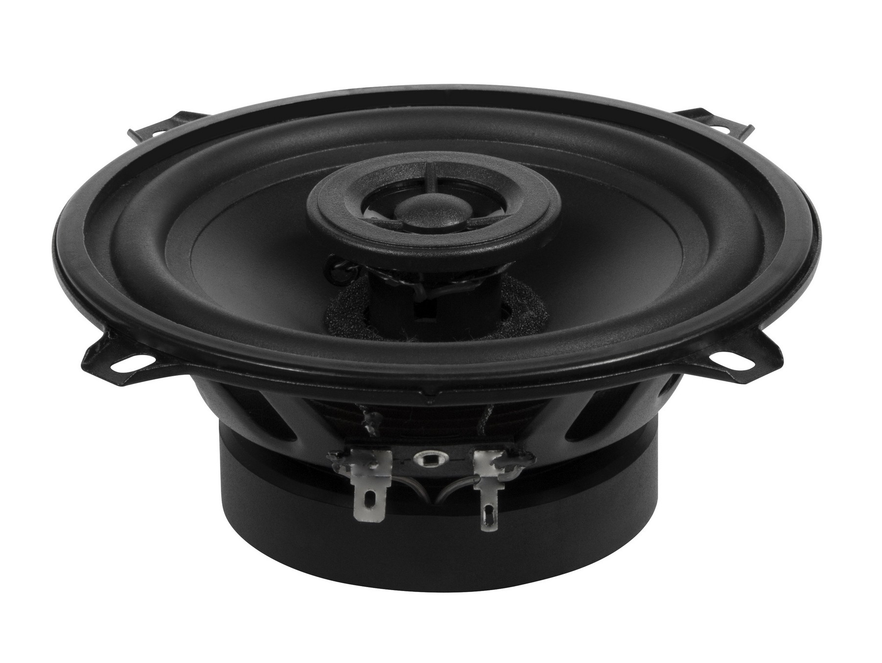 | Typ reproduktorůKoaxiální reproduktory: Koaxiální reproduktory se vyznačují konstrukcí tzv. vše v jednom. Výškový a středobasový reproduktor jsou v jednom koši. Výhodou je jednodušší montáž, ale díky spojení resp. blízkosti pásem v jednom reproduktoru, se obvykle sníží kvalita zvuku. Zpravidla uprostřed středobasového reproduktoru, je výškový reproduktor, jehož kmitací cívka pracuje ve druhé vzduchové mezeře společného magnatického obvodu. Třípásmový koaxiální reproduktor se skládá ze středobasového reproduktoru, ve předu na zvláštním nosníku je středový reproduktor a samostatný výškový. Komponentní reproduktory: Komponentní reproduktory se vyznačují rozdělením na jednotlivá frekvenční pásma, výškové + středobasové + popř. basové pásmo. Jednotlivé reproduktory se dají umístit zcela odděleně, což má za výsledek lepší zvukový i akustický projev. V drtivé většině případů komponentních reproduktorů je dodávaná i externí výhybka, která rozděluje výškové, středové / středobasové a u třípásma i basové pásmo popř. umožňuje nastavení decibelové úrovně u výškového reproduktoru (např. +2 dB, 0 dB, -2 dB), strmosti (např. 6dB/Okt. 12dB/Okt.) či aktivní nebo bi-amp zapojení. | Koaxiální 2pásmové |