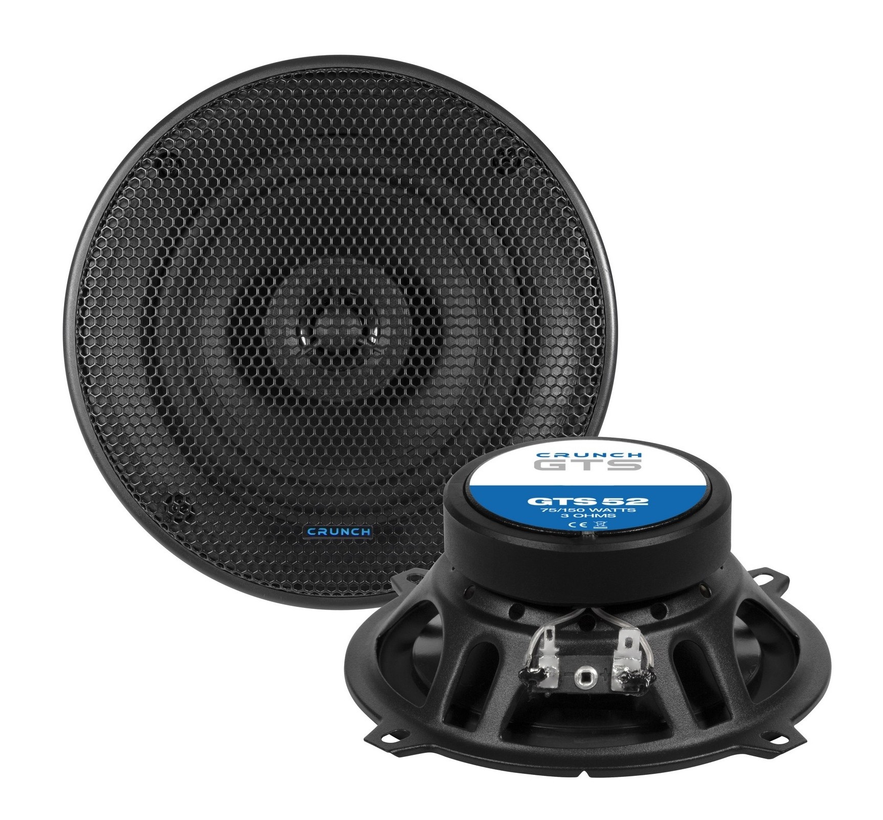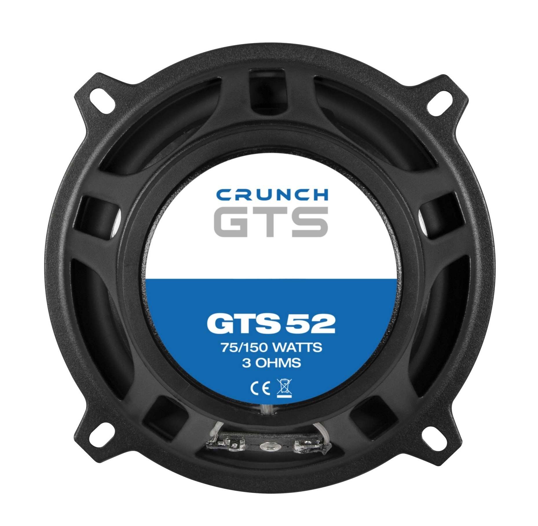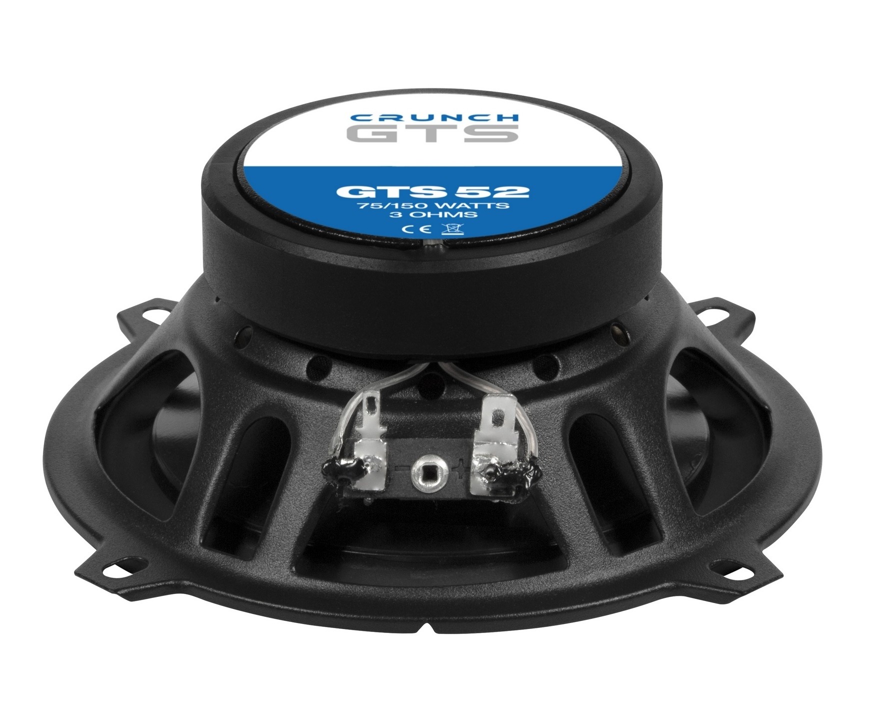 Koaxiální reproduktory řady Crunch GTS jsou navrženy jako cenově dostupný systém s důrazem na kvalitní akustický výkon, vyšší účinnost a snadnou instalaci. Základem jsou středobasové měniče s polypropylenovou membránou uložené ve stabilních ocelových koších s přiměřenou montážní hloubkou. O pohon se stará magnetický systém Y30, který při kompaktních rozměrech poskytuje solidní výkonovou rezervu. Konstrukce počítá také s lepším chlazením, včetně odvětrávané centrovací membrány a dodatečného odvětrání pólového nástavce. O vysoké frekvence se starají 13 mm výškové reproduktory s textilní kalotou a neodymovým magnetem. Systém má impedanci 3 Ω, což umožňuje lepší využití výkonu běžných zesilovačů.