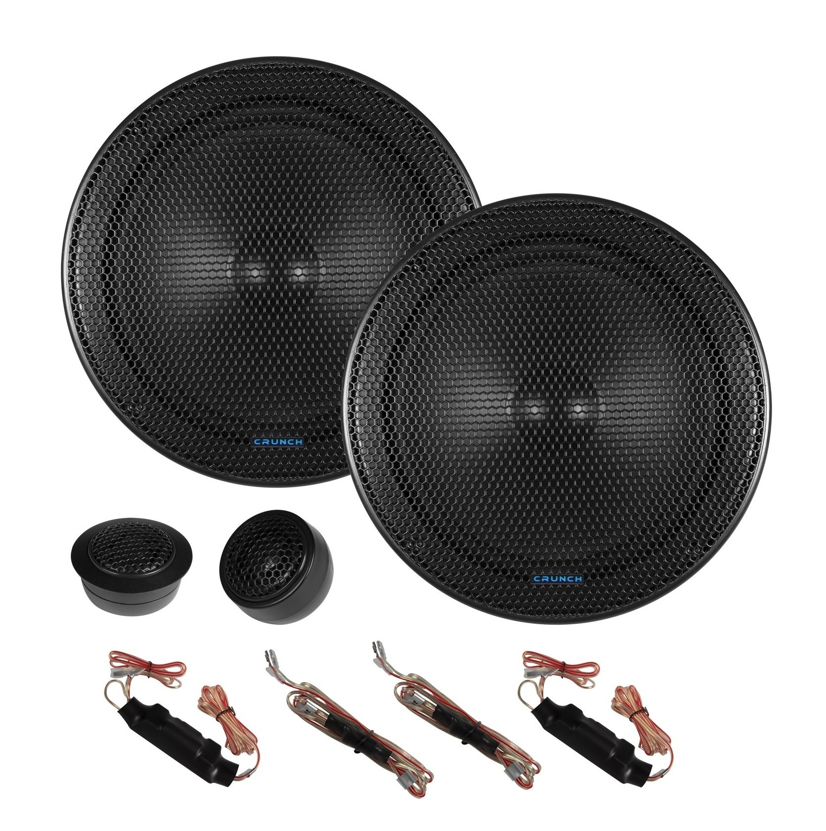 Komponentní reproduktory řady Crunch GTS jsou navrženy jako cenově dostupný systém s důrazem na kvalitní akustický výkon, vyšší účinnost a snadnou instalaci. Základem jsou středobasové měniče s polypropylenovou membránou uložené ve stabilních ocelových koších s přiměřenou montážní hloubkou. O pohon se stará magnetický systém Y30, který při kompaktních rozměrech poskytuje solidní výkonovou rezervu. Konstrukce počítá také s lepším chlazením, včetně odvětrávané centrovací membrány a dodatečného odvětrání pólového nástavce. O vysoké frekvence se starají 20 mm výškové reproduktory s textilní kalotou a neodymovým magnetem. Díky lineární frekvenční charakteristice je možné použít kompaktní kabelové výhybky, které jsou řešeny samostatně pro středobasový a výškový reproduktor. Výhybka výškového reproduktoru umožňuje také útlum výšek pro lepší přizpůsobení konkrétní instalaci. Systém má impedanci 3 Ω, což umožňuje lepší využití výkonu běžných zesilovačů.