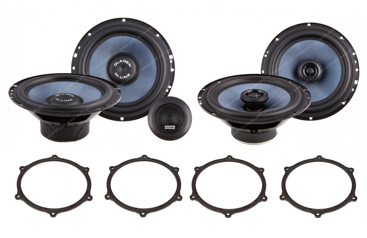 Reproduktory určené pro vylepšení stávajícího ozvučení vozidla Seat Ibiza IV roku výroby 2008 až 2015. Tento set reproduktorů se vyznačuje kvalitním zvukem, zpracováním a jednoduchou instalací bez nutnosti zásahu do interiéru vozidla. Součástí tohoto setu jsou následující produkty:- Komponentní reproduktory Gladen M 165 G2 do předních dveří.