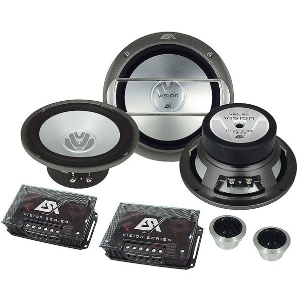 | Typ reproduktorůKoaxiální reproduktory: Koaxiální reproduktory se vyznačují konstrukcí tzv. vše v jednom. Výškový a středobasový reproduktor jsou v jednom koši. Výhodou je jednodušší montáž, ale díky spojení resp. blízkosti pásem v jednom reproduktoru, se obvykle sníží kvalita zvuku. Zpravidla uprostřed středobasového reproduktoru, je výškový reproduktor, jehož kmitací cívka pracuje ve druhé vzduchové mezeře společného magnatického obvodu. Třípásmový koaxiální reproduktor se skládá ze středobasového reproduktoru, ve předu na zvláštním nosníku je středový reproduktor a samostatný výškový. Komponentní reproduktory: Komponentní reproduktory se vyznačují rozdělením na jednotlivá frekvenční pásma, výškové + středobasové + popř. basové pásmo. Jednotlivé reproduktory se dají umístit zcela odděleně, což má za výsledek lepší zvukový i akustický projev. V drtivé většině případů komponentních reproduktorů je dodávaná i externí výhybka, která rozděluje výškové, středové / středobasové a u třípásma i basové pásmo popř. umožňuje nastavení decibelové úrovně u výškového reproduktoru (např. +2 dB, 0 dB, -2 dB), strmosti (např. 6dB/Okt. 12dB/Okt.) či aktivní nebo bi-amp zapojení. | komponentní 2 pásmové |