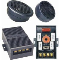| Typ reproduktorůKoaxiální reproduktory: Koaxiální reproduktory se vyznačují konstrukcí tzv. vše v jednom. Výškový a středobasový reproduktor jsou v jednom koši. Výhodou je jednodušší montáž, ale díky spojení resp. blízkosti pásem v jednom reproduktoru, se obvykle sníží kvalita zvuku. Zpravidla uprostřed středobasového reproduktoru, je výškový reproduktor, jehož kmitací cívka pracuje ve druhé vzduchové mezeře společného magnatického obvodu. Třípásmový koaxiální reproduktor se skládá ze středobasového reproduktoru, ve předu na zvláštním nosníku je středový reproduktor a samostatný výškový. Komponentní reproduktory: Komponentní reproduktory se vyznačují rozdělením na jednotlivá frekvenční pásma, výškové + středobasové + popř. basové pásmo. Jednotlivé reproduktory se dají umístit zcela odděleně, což má za výsledek lepší zvukový i akustický projev. V drtivé většině případů komponentních reproduktorů je dodávaná i externí výhybka, která rozděluje výškové, středové / středobasové a u třípásma i basové pásmo popř. umožňuje nastavení decibelové úrovně u výškového reproduktoru (např. +2 dB, 0 dB, -2 dB), strmosti (např. 6dB/Okt. 12dB/Okt.) či aktivní nebo bi-amp zapojení. | Výškové |