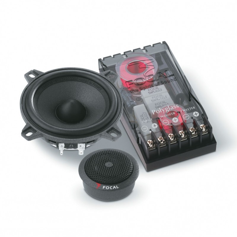 | Typ reproduktorůKoaxiální reproduktory: Koaxiální reproduktory se vyznačují konstrukcí tzv. vše v jednom. Výškový a středobasový reproduktor jsou v jednom koši. Výhodou je jednodušší montáž, ale díky spojení resp. blízkosti pásem v jednom reproduktoru, se obvykle sníží kvalita zvuku. Zpravidla uprostřed středobasového reproduktoru, je výškový reproduktor, jehož kmitací cívka pracuje ve druhé vzduchové mezeře společného magnatického obvodu. Třípásmový koaxiální reproduktor se skládá ze středobasového reproduktoru, ve předu na zvláštním nosníku je středový reproduktor a samostatný výškový. Komponentní reproduktory: Komponentní reproduktory se vyznačují rozdělením na jednotlivá frekvenční pásma, výškové + středobasové + popř. basové pásmo. Jednotlivé reproduktory se dají umístit zcela odděleně, což má za výsledek lepší zvukový i akustický projev. V drtivé většině případů komponentních reproduktorů je dodávaná i externí výhybka, která rozděluje výškové, středové / středobasové a u třípásma i basové pásmo popř. umožňuje nastavení decibelové úrovně u výškového reproduktoru (např. +2 dB, 0 dB, -2 dB), strmosti (např. 6dB/Okt. 12dB/Okt.) či aktivní nebo bi-amp zapojení. | komponentní 2 pásmové |