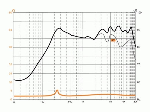 | Citlivost (2,83V/1m)Citlivost, senzitivita neboli účinnost reproduktoru. Citlivost reproduktorů se udává v decibelech (dB) a zjednodušeně řečeno znamená, čím vyšší hodnota, tím menší nároky na výkon zesilovače. Jedná se defacto o hodnocení, jak reproduktor převádí watty na zvuk. Hodnocení citlivosti jsou v úrovní hluku měřené na 1 metr od reproduktoru pomocí 1 W (watt energie) nebo pomocí 2,83 voltu na zdroji na 1 metr. Vyšší decibelová úroveň znamená, že reproduktor je hlasitější s nižším výkonem. Pro každý nárůst o 3 dB citlivosti, reproduktor vyžaduje poloviční sílu pro reprodukci stejné hlasitosti. Například, pokud 88 dB reproduktor potřebuje 100 Wattů k výrobě určité hlasitosti, pak reproduktor s 91dB citlivostí potřebuje jen 50 wattů, aby se dostal na stejnou hlasitost. | 87 dB |