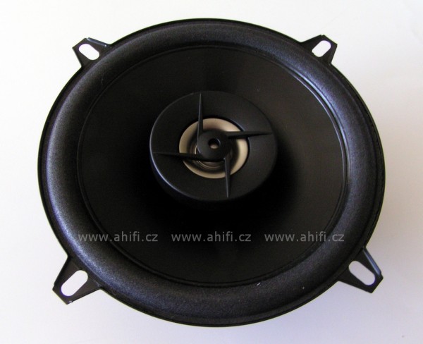 | Typ reproduktorůKoaxiální reproduktory: Koaxiální reproduktory se vyznačují konstrukcí tzv. vše v jednom. Výškový a středobasový reproduktor jsou v jednom koši. Výhodou je jednodušší montáž, ale díky spojení resp. blízkosti pásem v jednom reproduktoru, se obvykle sníží kvalita zvuku. Zpravidla uprostřed středobasového reproduktoru, je výškový reproduktor, jehož kmitací cívka pracuje ve druhé vzduchové mezeře společného magnatického obvodu. Třípásmový koaxiální reproduktor se skládá ze středobasového reproduktoru, ve předu na zvláštním nosníku je středový reproduktor a samostatný výškový. Komponentní reproduktory: Komponentní reproduktory se vyznačují rozdělením na jednotlivá frekvenční pásma, výškové + středobasové + popř. basové pásmo. Jednotlivé reproduktory se dají umístit zcela odděleně, což má za výsledek lepší zvukový i akustický projev. V drtivé většině případů komponentních reproduktorů je dodávaná i externí výhybka, která rozděluje výškové, středové / středobasové a u třípásma i basové pásmo popř. umožňuje nastavení decibelové úrovně u výškového reproduktoru (např. +2 dB, 0 dB, -2 dB), strmosti (např. 6dB/Okt. 12dB/Okt.) či aktivní nebo bi-amp zapojení. | koaxiální 2 pásmové |