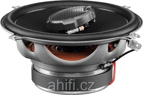 | Typ reproduktorůKoaxiální reproduktory: Koaxiální reproduktory se vyznačují konstrukcí tzv. vše v jednom. Výškový a středobasový reproduktor jsou v jednom koši. Výhodou je jednodušší montáž, ale díky spojení resp. blízkosti pásem v jednom reproduktoru, se obvykle sníží kvalita zvuku. Zpravidla uprostřed středobasového reproduktoru, je výškový reproduktor, jehož kmitací cívka pracuje ve druhé vzduchové mezeře společného magnatického obvodu. Třípásmový koaxiální reproduktor se skládá ze středobasového reproduktoru, ve předu na zvláštním nosníku je středový reproduktor a samostatný výškový. Komponentní reproduktory: Komponentní reproduktory se vyznačují rozdělením na jednotlivá frekvenční pásma, výškové + středobasové + popř. basové pásmo. Jednotlivé reproduktory se dají umístit zcela odděleně, což má za výsledek lepší zvukový i akustický projev. V drtivé většině případů komponentních reproduktorů je dodávaná i externí výhybka, která rozděluje výškové, středové / středobasové a u třípásma i basové pásmo popř. umožňuje nastavení decibelové úrovně u výškového reproduktoru (např. +2 dB, 0 dB, -2 dB), strmosti (např. 6dB/Okt. 12dB/Okt.) či aktivní nebo bi-amp zapojení. | koaxiální 2 pásmové |