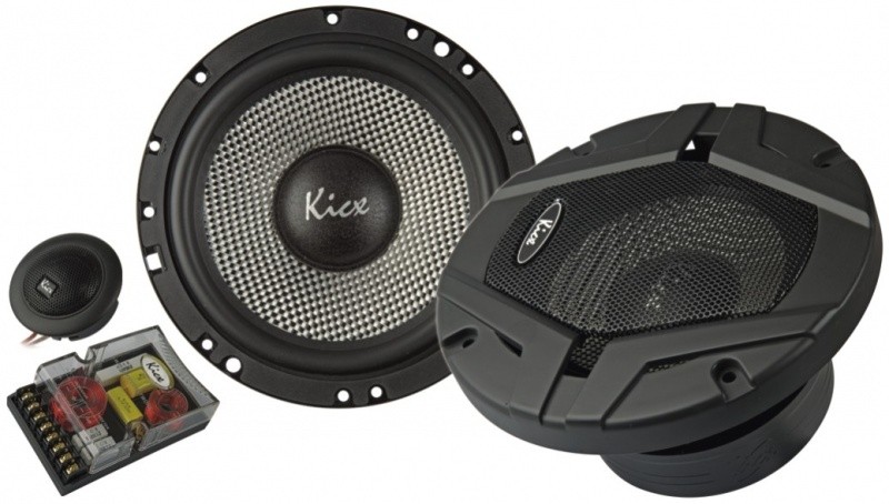 | Typ reproduktorůKoaxiální reproduktory: Koaxiální reproduktory se vyznačují konstrukcí tzv. vše v jednom. Výškový a středobasový reproduktor jsou v jednom koši. Výhodou je jednodušší montáž, ale díky spojení resp. blízkosti pásem v jednom reproduktoru, se obvykle sníží kvalita zvuku. Zpravidla uprostřed středobasového reproduktoru, je výškový reproduktor, jehož kmitací cívka pracuje ve druhé vzduchové mezeře společného magnatického obvodu. Třípásmový koaxiální reproduktor se skládá ze středobasového reproduktoru, ve předu na zvláštním nosníku je středový reproduktor a samostatný výškový. Komponentní reproduktory: Komponentní reproduktory se vyznačují rozdělením na jednotlivá frekvenční pásma, výškové + středobasové + popř. basové pásmo. Jednotlivé reproduktory se dají umístit zcela odděleně, což má za výsledek lepší zvukový i akustický projev. V drtivé většině případů komponentních reproduktorů je dodávaná i externí výhybka, která rozděluje výškové, středové / středobasové a u třípásma i basové pásmo popř. umožňuje nastavení decibelové úrovně u výškového reproduktoru (např. +2 dB, 0 dB, -2 dB), strmosti (např. 6dB/Okt. 12dB/Okt.) či aktivní nebo bi-amp zapojení. | komponentní 2 pásmové |