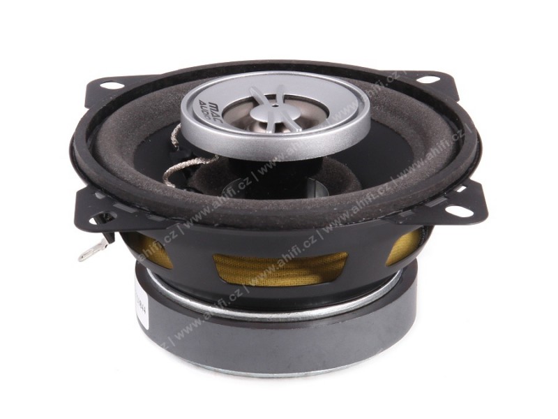 | Typ reproduktorůKoaxiální reproduktory: Koaxiální reproduktory se vyznačují konstrukcí tzv. vše v jednom. Výškový a středobasový reproduktor jsou v jednom koši. Výhodou je jednodušší montáž, ale díky spojení resp. blízkosti pásem v jednom reproduktoru, se obvykle sníží kvalita zvuku. Zpravidla uprostřed středobasového reproduktoru, je výškový reproduktor, jehož kmitací cívka pracuje ve druhé vzduchové mezeře společného magnatického obvodu. Třípásmový koaxiální reproduktor se skládá ze středobasového reproduktoru, ve předu na zvláštním nosníku je středový reproduktor a samostatný výškový. Komponentní reproduktory: Komponentní reproduktory se vyznačují rozdělením na jednotlivá frekvenční pásma, výškové + středobasové + popř. basové pásmo. Jednotlivé reproduktory se dají umístit zcela odděleně, což má za výsledek lepší zvukový i akustický projev. V drtivé většině případů komponentních reproduktorů je dodávaná i externí výhybka, která rozděluje výškové, středové / středobasové a u třípásma i basové pásmo popř. umožňuje nastavení decibelové úrovně u výškového reproduktoru (např. +2 dB, 0 dB, -2 dB), strmosti (např. 6dB/Okt. 12dB/Okt.) či aktivní nebo bi-amp zapojení. | Koaxiální 2 pásmové |