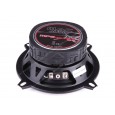 | Typ reproduktorůKoaxiální reproduktory: Koaxiální reproduktory se vyznačují konstrukcí tzv. vše v jednom. Výškový a středobasový reproduktor jsou v jednom koši. Výhodou je jednodušší montáž, ale díky spojení resp. blízkosti pásem v jednom reproduktoru, se obvykle sníží kvalita zvuku. Zpravidla uprostřed středobasového reproduktoru, je výškový reproduktor, jehož kmitací cívka pracuje ve druhé vzduchové mezeře společného magnatického obvodu. Třípásmový koaxiální reproduktor se skládá ze středobasového reproduktoru, ve předu na zvláštním nosníku je středový reproduktor a samostatný výškový. Komponentní reproduktory: Komponentní reproduktory se vyznačují rozdělením na jednotlivá frekvenční pásma, výškové + středobasové + popř. basové pásmo. Jednotlivé reproduktory se dají umístit zcela odděleně, což má za výsledek lepší zvukový i akustický projev. V drtivé většině případů komponentních reproduktorů je dodávaná i externí výhybka, která rozděluje výškové, středové / středobasové a u třípásma i basové pásmo popř. umožňuje nastavení decibelové úrovně u výškového reproduktoru (např. +2 dB, 0 dB, -2 dB), strmosti (např. 6dB/Okt. 12dB/Okt.) či aktivní nebo bi-amp zapojení. | Koaxiální 2 pásmové |
