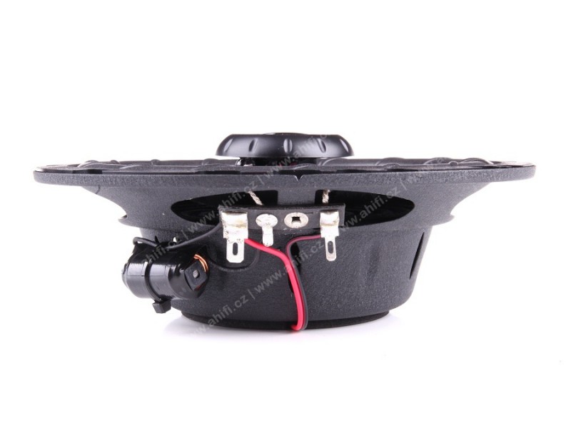 | Frekvenční výhybka součástí baleníFrekvenční výhybka je důležitou součástí defacto všech reproduktorů. Výhybka obvykle obsahuje různé hodnoty odporů, velikosti cívek a typy kondenzátorů, které zcela zásadně upravují zvuk. K čemu výhybky slouží popisujeme níže. Komponentní reproduktory: Součástí každého kvalitní komponentního reprosystému je výhybka. Jejím úkolem je zajistit rozdělení frekvencí, které zesilovač produkuje v celém akustickém spektru kmitočtů tak, aby každý z reproduktorů dostal jen tu část pásma, kterou může optimálně zahrát z hlediska účinnosti a minimálního zkreslení. Koaxiální reproduktory: U koaxiálních reproduktorů bývá z většiny případů jednoduchá výhybka (6dB/Okt.) tvořená kondenzátorem u výškového reproduktoru. | Ano (kondenzátor) |