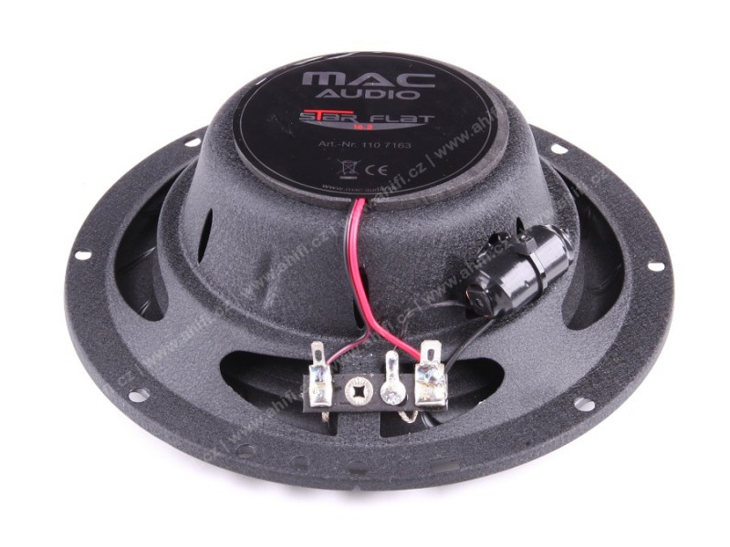 Kompaktní, výkonné a efektivní - tři atributy pro plochý Star Flat 2-pásmový koaxiální systém. Navzdory minimální hloubce instalace, systém produkuje silný a dynamický zvuk. Membrána z vrstvého papíru. Výškáče v titanovém designu, potažené polykarbonátovou vrstvou, která zajišťuje přesné a transparentní vyšší frekvence. Oba reproduktory jsou chráněny vícedílnou krycí mřížkou, která je osazena logem z broušeného hliníku.