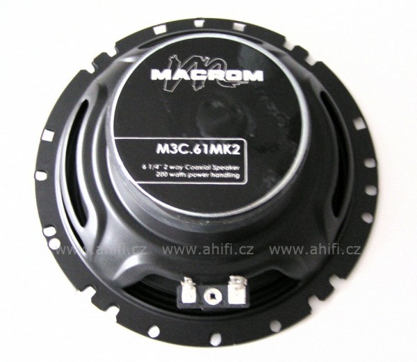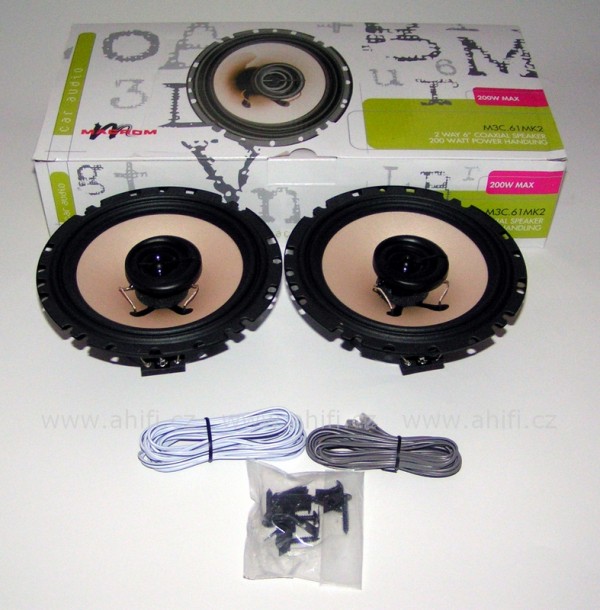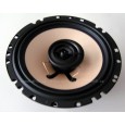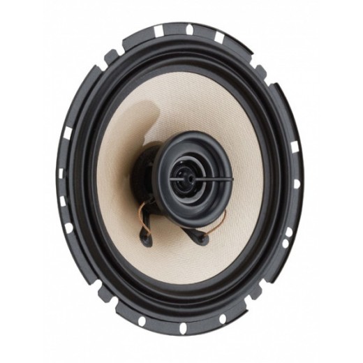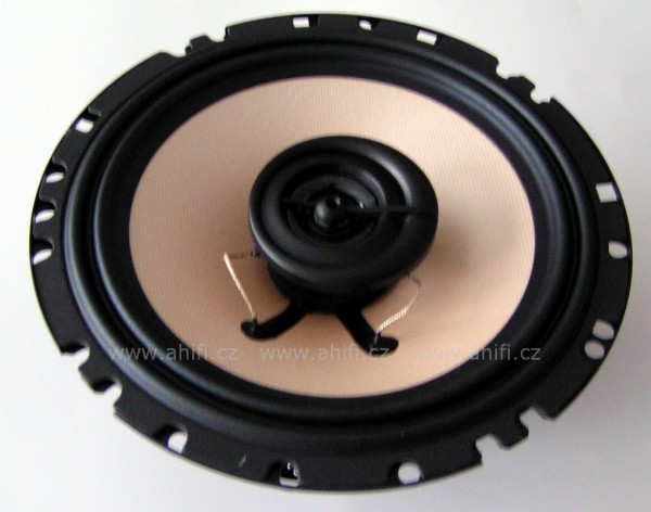 | Typ reproduktorůKoaxiální reproduktory: Koaxiální reproduktory se vyznačují konstrukcí tzv. vše v jednom. Výškový a středobasový reproduktor jsou v jednom koši. Výhodou je jednodušší montáž, ale díky spojení resp. blízkosti pásem v jednom reproduktoru, se obvykle sníží kvalita zvuku. Zpravidla uprostřed středobasového reproduktoru, je výškový reproduktor, jehož kmitací cívka pracuje ve druhé vzduchové mezeře společného magnatického obvodu. Třípásmový koaxiální reproduktor se skládá ze středobasového reproduktoru, ve předu na zvláštním nosníku je středový reproduktor a samostatný výškový. Komponentní reproduktory: Komponentní reproduktory se vyznačují rozdělením na jednotlivá frekvenční pásma, výškové + středobasové + popř. basové pásmo. Jednotlivé reproduktory se dají umístit zcela odděleně, což má za výsledek lepší zvukový i akustický projev. V drtivé většině případů komponentních reproduktorů je dodávaná i externí výhybka, která rozděluje výškové, středové / středobasové a u třípásma i basové pásmo popř. umožňuje nastavení decibelové úrovně u výškového reproduktoru (např. +2 dB, 0 dB, -2 dB), strmosti (např. 6dB/Okt. 12dB/Okt.) či aktivní nebo bi-amp zapojení. | koaxiální 2 pásmové |