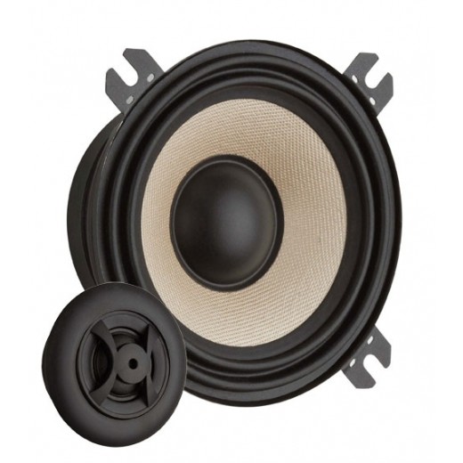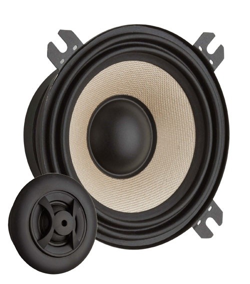 | Typ reproduktorůKoaxiální reproduktory: Koaxiální reproduktory se vyznačují konstrukcí tzv. vše v jednom. Výškový a středobasový reproduktor jsou v jednom koši. Výhodou je jednodušší montáž, ale díky spojení resp. blízkosti pásem v jednom reproduktoru, se obvykle sníží kvalita zvuku. Zpravidla uprostřed středobasového reproduktoru, je výškový reproduktor, jehož kmitací cívka pracuje ve druhé vzduchové mezeře společného magnatického obvodu. Třípásmový koaxiální reproduktor se skládá ze středobasového reproduktoru, ve předu na zvláštním nosníku je středový reproduktor a samostatný výškový. Komponentní reproduktory: Komponentní reproduktory se vyznačují rozdělením na jednotlivá frekvenční pásma, výškové + středobasové + popř. basové pásmo. Jednotlivé reproduktory se dají umístit zcela odděleně, což má za výsledek lepší zvukový i akustický projev. V drtivé většině případů komponentních reproduktorů je dodávaná i externí výhybka, která rozděluje výškové, středové / středobasové a u třípásma i basové pásmo popř. umožňuje nastavení decibelové úrovně u výškového reproduktoru (např. +2 dB, 0 dB, -2 dB), strmosti (např. 6dB/Okt. 12dB/Okt.) či aktivní nebo bi-amp zapojení. | komponentní 2 pásmové |
