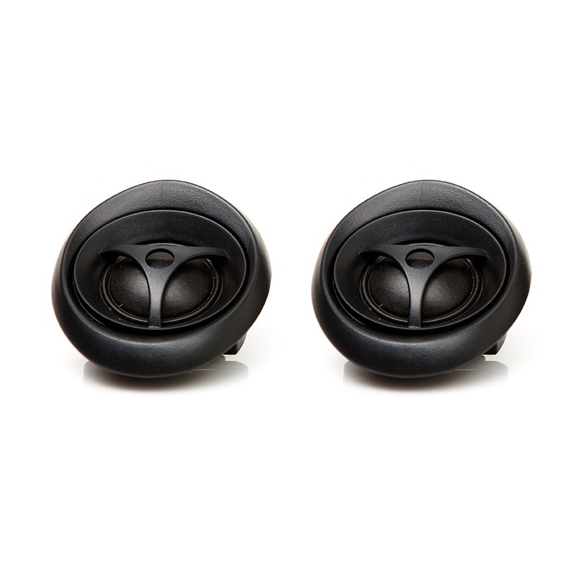 | Typ reproduktorůKoaxiální reproduktory: Koaxiální reproduktory se vyznačují konstrukcí tzv. vše v jednom. Výškový a středobasový reproduktor jsou v jednom koši. Výhodou je jednodušší montáž, ale díky spojení resp. blízkosti pásem v jednom reproduktoru, se obvykle sníží kvalita zvuku. Zpravidla uprostřed středobasového reproduktoru, je výškový reproduktor, jehož kmitací cívka pracuje ve druhé vzduchové mezeře společného magnatického obvodu. Třípásmový koaxiální reproduktor se skládá ze středobasového reproduktoru, ve předu na zvláštním nosníku je středový reproduktor a samostatný výškový. Komponentní reproduktory: Komponentní reproduktory se vyznačují rozdělením na jednotlivá frekvenční pásma, výškové + středobasové + popř. basové pásmo. Jednotlivé reproduktory se dají umístit zcela odděleně, což má za výsledek lepší zvukový i akustický projev. V drtivé většině případů komponentních reproduktorů je dodávaná i externí výhybka, která rozděluje výškové, středové / středobasové a u třípásma i basové pásmo popř. umožňuje nastavení decibelové úrovně u výškového reproduktoru (např. +2 dB, 0 dB, -2 dB), strmosti (např. 6dB/Okt. 12dB/Okt.) či aktivní nebo bi-amp zapojení. | Výškové |