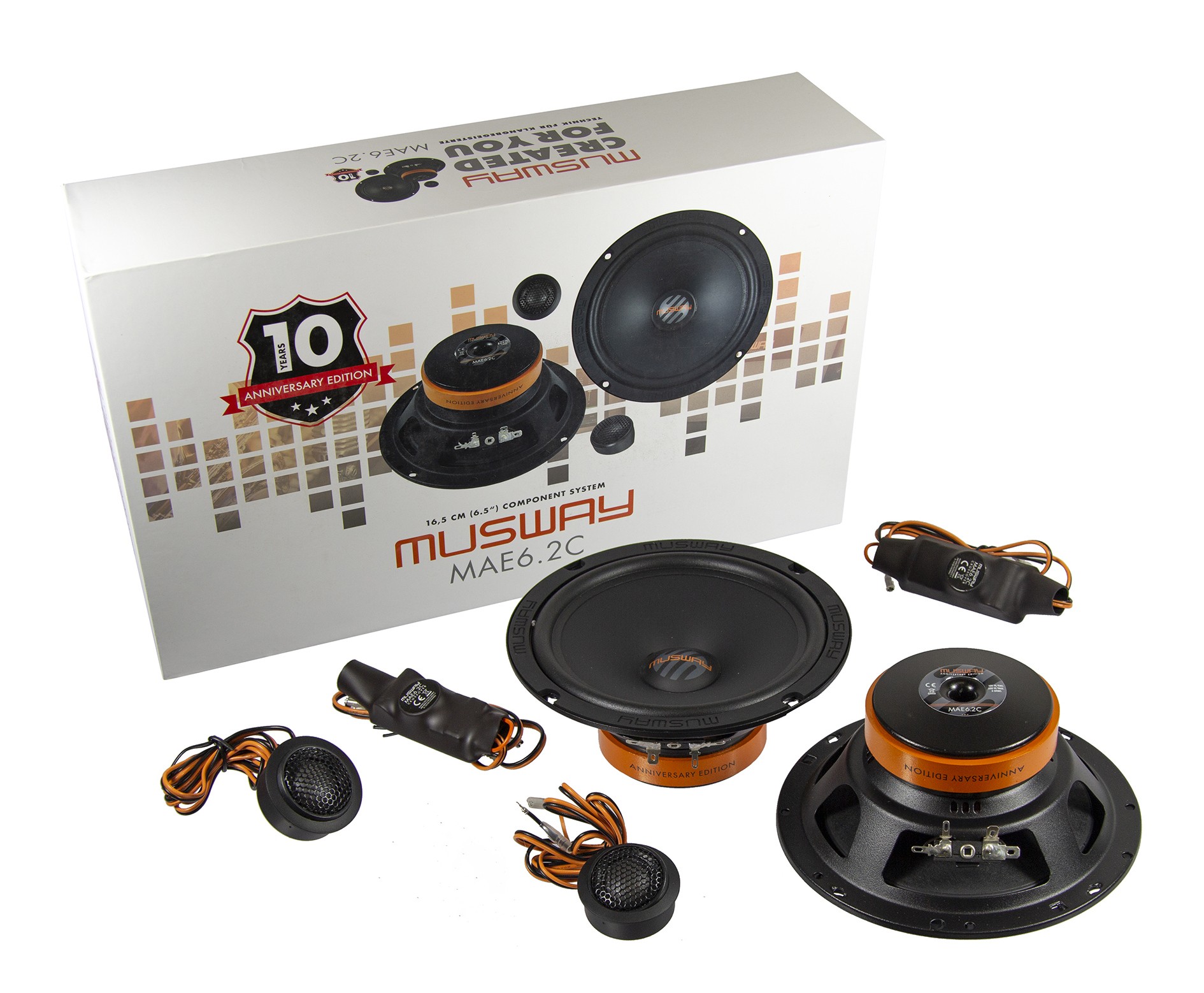 Musway MAE6.2C jsou 2pásmové komponentní reproduktory o průměru 165 mm navržené k 10. výročí značky Musway. Tento model vznikl jako speciální edice s cílem nabídnout maximální kvalitu zvuku v dostupné cenové kategorii. Konstrukce reproduktorů vychází z filozofie „reduced to the max“, tedy zaměření na to nejdůležitější – kvalitní měniče, vyvážený zvuk a jednoduchou, funkční konstrukci bez zbytečných prvků. Velkou předností systému je kombinace impedance 3 Ω a vysoké citlivosti přibližně 93 dB (2,83V/1 m), díky čemuž reproduktory dokáží velmi efektivně využít i omezený výkon běžných továrních autorádií. Model MAE6.2C tak zaujme svou vysokou citlivostí, dynamikou, živým charakterem a velmi vyváženým a přirozeným zvukem.