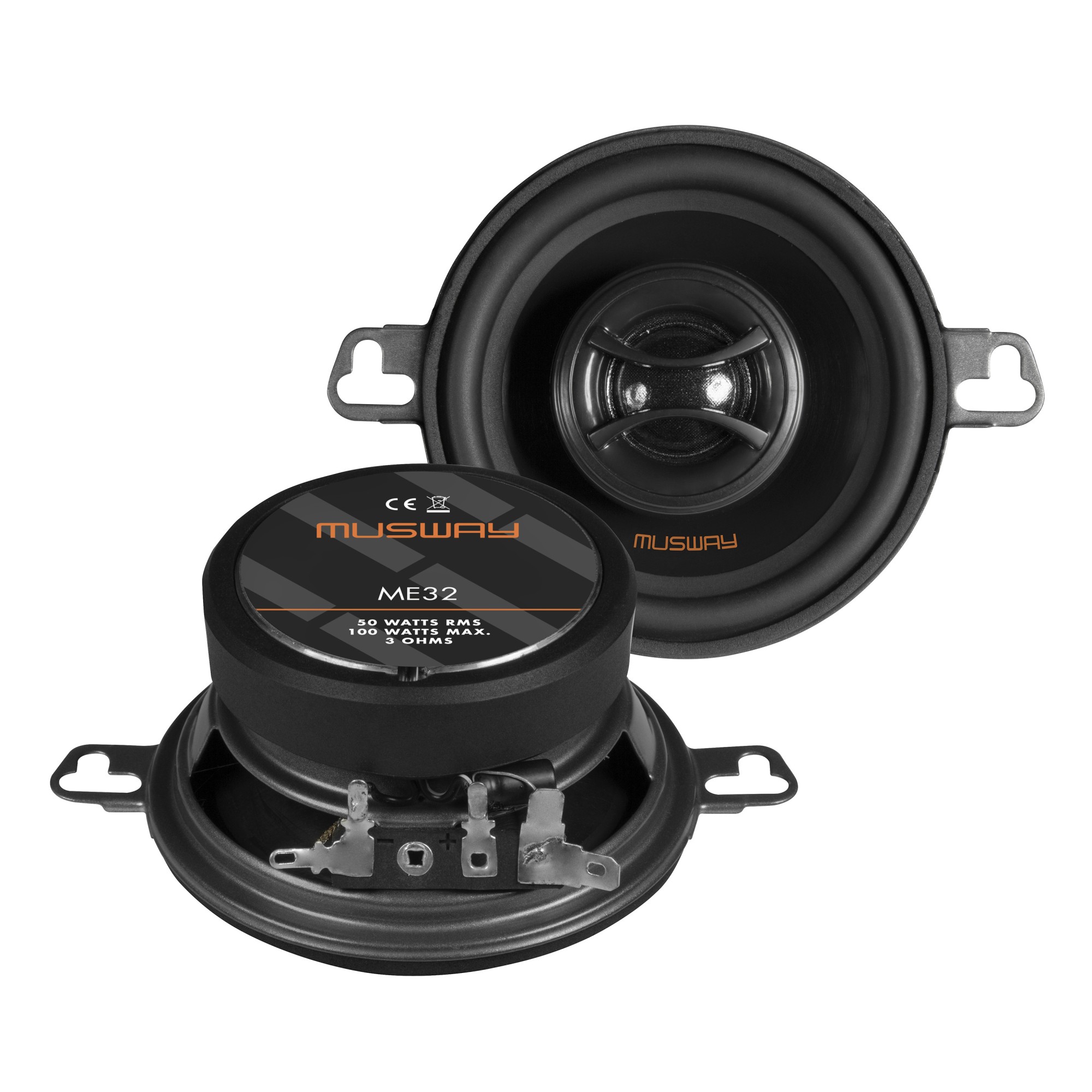Musway ME32 jsou 2pásmové koaxiální reproduktory o průměru 87 mm z modelové řady ME, která představuje vstup do světa Musway. I jako základní řada si však zachovávají typický charakter značky – detailní, vyvážený a přirozený zvuk s lineární frekvenční odezvou a kultivovaným projevem, který neunavuje ani při delším poslechu. K tomu přispívá také hedvábný výškový reproduktor použitý u koaxiálních modelů, který představuje v dané cenové kategorii nadstandardní řešení. Součástí řady ME je celkem dvanáct modelů komponentních a koaxiálních reproduktorů pro snadnou integraci do širokého spektra automobilů.