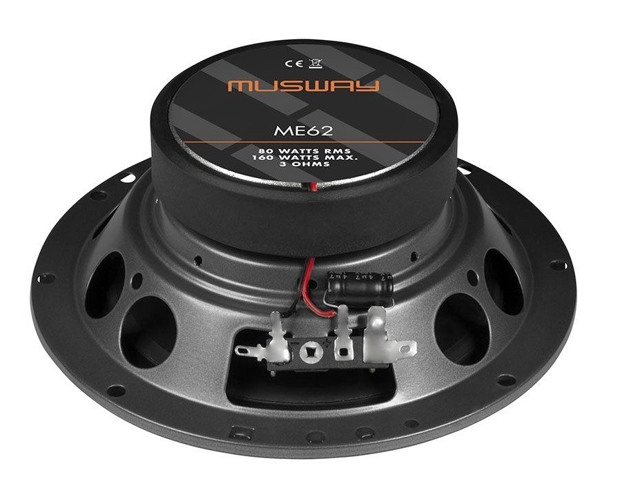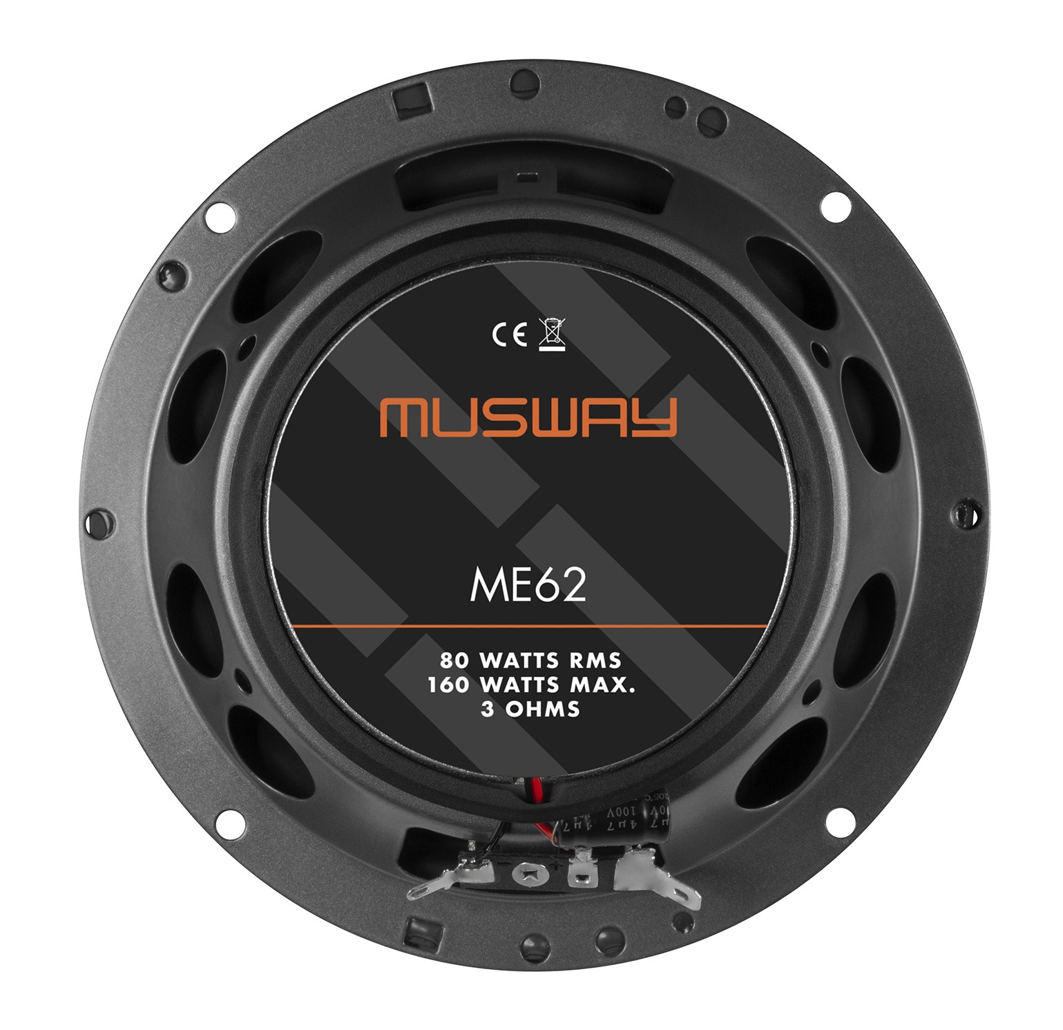 Musway ME62 jsou 2pásmové koaxiální reproduktory o průměru 165 mm z modelové řady ME, která představuje vstup do světa Musway. I jako základní řada si však zachovávají typický charakter značky – detailní, vyvážený a přirozený zvuk s lineární frekvenční odezvou a kultivovaným projevem, který neunavuje ani při delším poslechu. K tomu přispívá také hedvábný výškový reproduktor použitý u koaxiálních modelů, který představuje v dané cenové kategorii nadstandardní řešení. Součástí řady ME je celkem dvanáct modelů komponentních a koaxiálních reproduktorů pro snadnou integraci do širokého spektra automobilů.