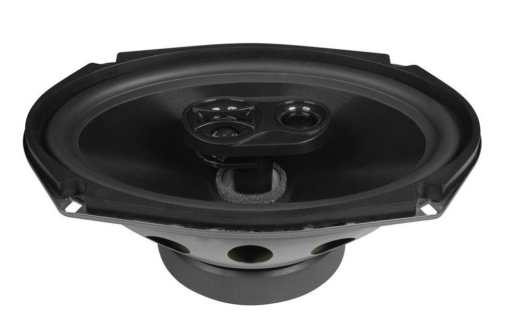 | Typ reproduktorůKoaxiální reproduktory: Koaxiální reproduktory se vyznačují konstrukcí tzv. vše v jednom. Výškový a středobasový reproduktor jsou v jednom koši. Výhodou je jednodušší montáž, ale díky spojení resp. blízkosti pásem v jednom reproduktoru, se obvykle sníží kvalita zvuku. Zpravidla uprostřed středobasového reproduktoru, je výškový reproduktor, jehož kmitací cívka pracuje ve druhé vzduchové mezeře společného magnatického obvodu. Třípásmový koaxiální reproduktor se skládá ze středobasového reproduktoru, ve předu na zvláštním nosníku je středový reproduktor a samostatný výškový. Komponentní reproduktory: Komponentní reproduktory se vyznačují rozdělením na jednotlivá frekvenční pásma, výškové + středobasové + popř. basové pásmo. Jednotlivé reproduktory se dají umístit zcela odděleně, což má za výsledek lepší zvukový i akustický projev. V drtivé většině případů komponentních reproduktorů je dodávaná i externí výhybka, která rozděluje výškové, středové / středobasové a u třípásma i basové pásmo popř. umožňuje nastavení decibelové úrovně u výškového reproduktoru (např. +2 dB, 0 dB, -2 dB), strmosti (např. 6dB/Okt. 12dB/Okt.) či aktivní nebo bi-amp zapojení. | Triaxiální |