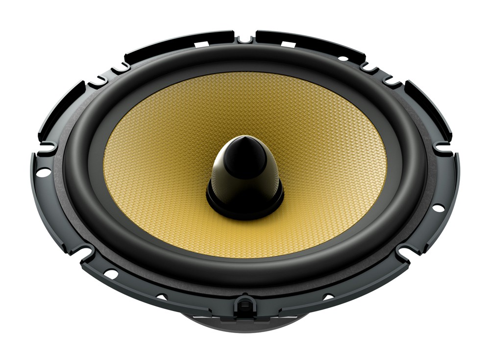 | Typ reproduktorůKoaxiální reproduktory: Koaxiální reproduktory se vyznačují konstrukcí tzv. vše v jednom. Výškový a středobasový reproduktor jsou v jednom koši. Výhodou je jednodušší montáž, ale díky spojení resp. blízkosti pásem v jednom reproduktoru, se obvykle sníží kvalita zvuku. Zpravidla uprostřed středobasového reproduktoru, je výškový reproduktor, jehož kmitací cívka pracuje ve druhé vzduchové mezeře společného magnatického obvodu. Třípásmový koaxiální reproduktor se skládá ze středobasového reproduktoru, ve předu na zvláštním nosníku je středový reproduktor a samostatný výškový. Komponentní reproduktory: Komponentní reproduktory se vyznačují rozdělením na jednotlivá frekvenční pásma, výškové + středobasové + popř. basové pásmo. Jednotlivé reproduktory se dají umístit zcela odděleně, což má za výsledek lepší zvukový i akustický projev. V drtivé většině případů komponentních reproduktorů je dodávaná i externí výhybka, která rozděluje výškové, středové / středobasové a u třípásma i basové pásmo popř. umožňuje nastavení decibelové úrovně u výškového reproduktoru (např. +2 dB, 0 dB, -2 dB), strmosti (např. 6dB/Okt. 12dB/Okt.) či aktivní nebo bi-amp zapojení. | komponentní 2 pásmové |