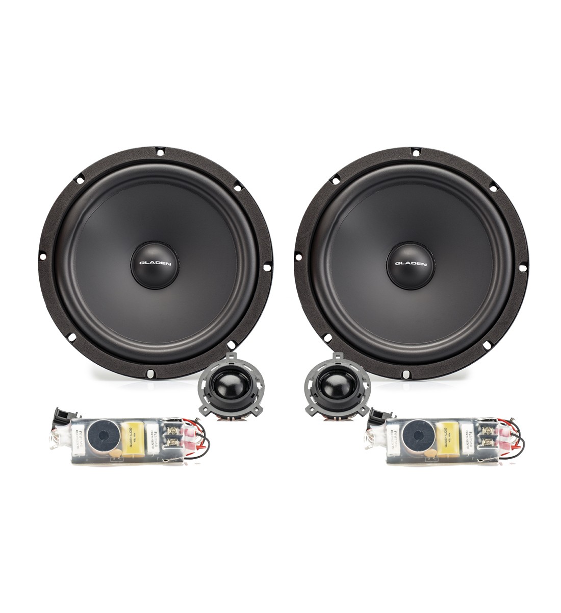 Gladen One 200 T6-G3 sází na vynikající technické vlastnosti nově vyvinutého šasi s feritovými magnety. Reproduktory se velmi snadno instalují do vašeho VW T6 díky konektorům specifickým pro vozidlo a přesně padnoucím držákům. Nové membrány z potahovaného papíru jsou tužší a mají lepší vnitřní tlumení. Výškové reproduktory mají tříbodové uchycení specifické pro dané vozidlo, a lze je proto neviditelně namontovat za obložení A-sloupku. Výhybka je optimálně přizpůsobena podmínkám VW T6. Modelová řada One od společnosti Gladen zahrnuje reproduktorové systémy, které jsou svým designem i zvukovým laděním přizpůsobeny konkrétním vozidlům. Posláním řady One je dosáhnout dokonalé souhry jednotlivých komponentů s továrním systémem vozidla. Reproduktory mají stejný tvar, rozměr i konektory jako tovární reproduktory, což umožní velmi snadnou a rychlou instalaci. Všechny reproduktory řady One byly testovány a optimálně vyladěny nejen v interní laboratoři společnosti Gladen, ale i v reálných podmínkách jednotlivých modelů vozidel. Na konci vývoje prošly všechny reproduktory četnými testy parametrů a frekvenční odezvy a byly finálně doladěny zvukovými inženýry společnosti Gladen. A to s jediným cílem, poskytnout optimální zvukový zážitek s důrazem na vysoce kvalitní zvuk, detail a snadnou instalaci v duchu Plug & Play.Hlavní vlastnosti reproduktorů Gladen One 200 T6-G3