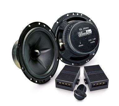| Typ reproduktorůKoaxiální reproduktory: Koaxiální reproduktory se vyznačují konstrukcí tzv. vše v jednom. Výškový a středobasový reproduktor jsou v jednom koši. Výhodou je jednodušší montáž, ale díky spojení resp. blízkosti pásem v jednom reproduktoru, se obvykle sníží kvalita zvuku. Zpravidla uprostřed středobasového reproduktoru, je výškový reproduktor, jehož kmitací cívka pracuje ve druhé vzduchové mezeře společného magnatického obvodu. Třípásmový koaxiální reproduktor se skládá ze středobasového reproduktoru, ve předu na zvláštním nosníku je středový reproduktor a samostatný výškový. Komponentní reproduktory: Komponentní reproduktory se vyznačují rozdělením na jednotlivá frekvenční pásma, výškové + středobasové + popř. basové pásmo. Jednotlivé reproduktory se dají umístit zcela odděleně, což má za výsledek lepší zvukový i akustický projev. V drtivé většině případů komponentních reproduktorů je dodávaná i externí výhybka, která rozděluje výškové, středové / středobasové a u třípásma i basové pásmo popř. umožňuje nastavení decibelové úrovně u výškového reproduktoru (např. +2 dB, 0 dB, -2 dB), strmosti (např. 6dB/Okt. 12dB/Okt.) či aktivní nebo bi-amp zapojení. | Komponentní 2 pásmové |