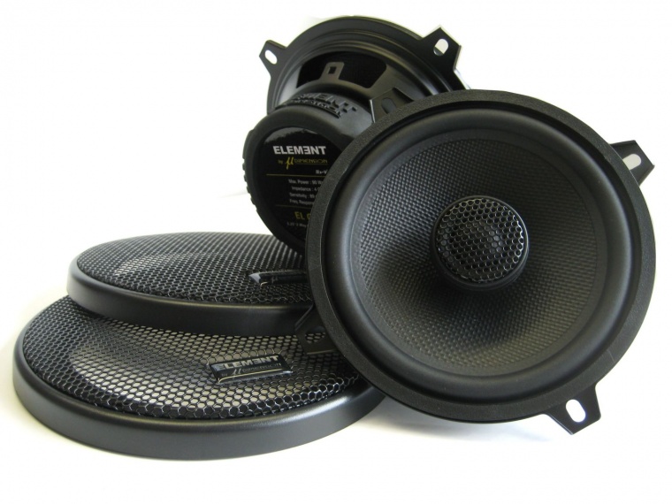| Typ reproduktorůKoaxiální reproduktory: Koaxiální reproduktory se vyznačují konstrukcí tzv. vše v jednom. Výškový a středobasový reproduktor jsou v jednom koši. Výhodou je jednodušší montáž, ale díky spojení resp. blízkosti pásem v jednom reproduktoru, se obvykle sníží kvalita zvuku. Zpravidla uprostřed středobasového reproduktoru, je výškový reproduktor, jehož kmitací cívka pracuje ve druhé vzduchové mezeře společného magnatického obvodu. Třípásmový koaxiální reproduktor se skládá ze středobasového reproduktoru, ve předu na zvláštním nosníku je středový reproduktor a samostatný výškový. Komponentní reproduktory: Komponentní reproduktory se vyznačují rozdělením na jednotlivá frekvenční pásma, výškové + středobasové + popř. basové pásmo. Jednotlivé reproduktory se dají umístit zcela odděleně, což má za výsledek lepší zvukový i akustický projev. V drtivé většině případů komponentních reproduktorů je dodávaná i externí výhybka, která rozděluje výškové, středové / středobasové a u třípásma i basové pásmo popř. umožňuje nastavení decibelové úrovně u výškového reproduktoru (např. +2 dB, 0 dB, -2 dB), strmosti (např. 6dB/Okt. 12dB/Okt.) či aktivní nebo bi-amp zapojení. | Koaxiální 2 pásmové |