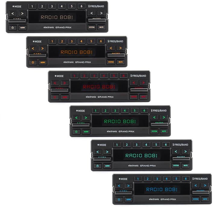 RetroSound Grand Prix 6 DAB je 1DIN retro autorádio bez mechaniky s USB vstupem, AUX-In vstupem, vestavěným Bluetooth, příjmem vysílání AM/FM/DAB a variabilním podsvícením tlačítek a displeje. RetroSound Gran Prix autorádio bylo speciálně vyvinuto pro evropská vozidla 80. a 90. let. S tímto zařízením zachováte design vašeho youngtimera a nemusíte ho řídit bez příjmu standardního rádia nebo rádia digitálního. Kromě standardního příjmu nabízí Grand Prix 6 DAB Bluetooth pro handsfree telefonování či A2DP audiostreaming, 2x USB vstup, nebo i možnost připojit externí zařízení, jako je váš mobilní telefon přes 3,5mm AUX-In vstup. Grand Prix 6 DAB navíc umožňuje dokonalé doladění designu díky variabilnímu podsvícení tlačítek a displeje. Autorádio RetroSound Grand Prix 6 DAB se skládá z kompletního montážního kitu MOTOR-6DAB a čelního panelu Grand Prix. Tento model autorádia lze namontovat do vozidel jako jsou BMW, Jaguar, Mercedes-Benz, Porsche a jiné.