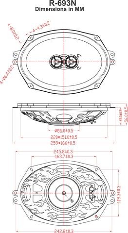 RetroSound R-693N jsou 3pásmové reproduktory se třemi samostatnými měniči pro širší frekvenční odezvu. Díky vyhrazenému měniči pro výšky, středy a basy lze každý frekvenční rozsah reprodukovat přesněji a s větší čistotou. Pro vysoce výkonnou manipulaci s ultratenkou montážní hloubkou je použita konstrukce neodymového magnetu s designem dip-cut, aby se zabránilo zkreslení. Santoprene® membrány poskytují nejpřesnější možnou reprodukci zvuku a hedvábné výškové reproduktory produkují hladké a přirozeněji znějící výšky.