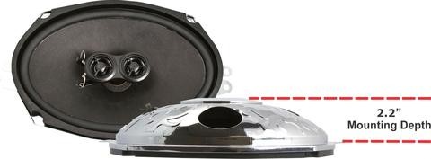 | Rozměr středobasového reproduktoruPrůměr reproduktoru uvádíme jako průměr celého reproduktoru, nikoliv včetně uchycení, kdy u menších reproduktorů (87, 100, 130 mm) vyčnívají ještě navíc úchyty. Některé reproduktory jsou oválné a tam se uvádí rozměr v palcích, vždy nejkratší strana k nejdelší straně. Jeden palce je cca. 2,5 cm. | 6 x 9" |