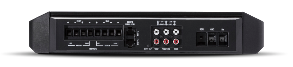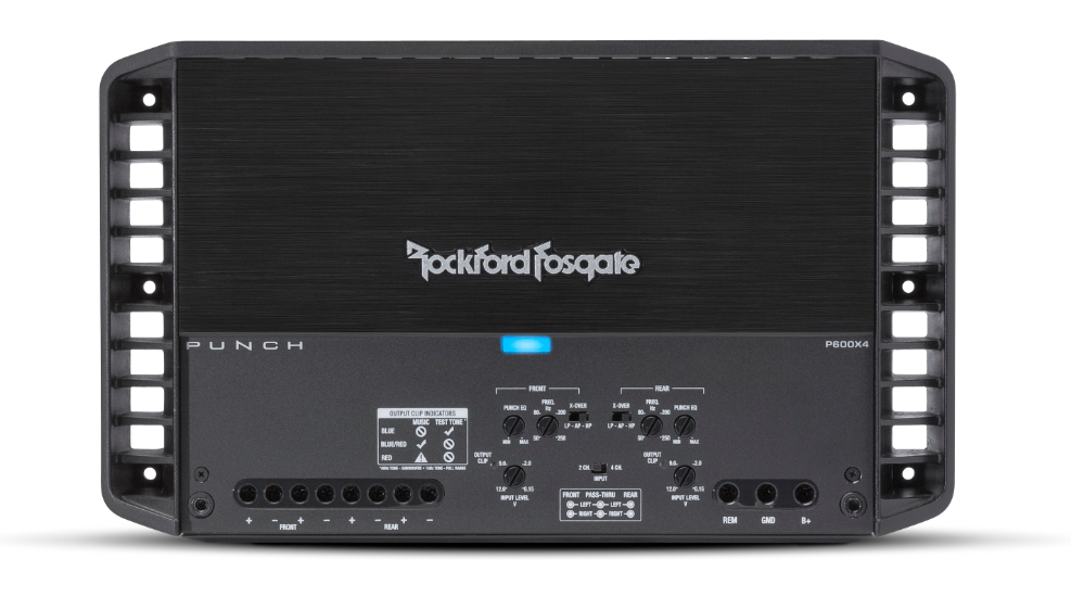 Vícekanálový zesilovač P600X4 je univerzální a lze ho využít téměř v každé audio konfiguraci. Mimo čtyřkanálový stereo režim je možné zapojení obou kanálů do můstku a vytvořit tak dvoukanálový vysoce výkonný zesilovač, popřípadě provozovat přední stereo reproduktory se subwooferem vzadu v tříkanálovém režimu. Nastavitelná frekvenční výhybka spodní a horní pásmové propusti a vestavěný Punch ekvalizátor umožňují detailní nastavení basových frekvencí, zatímco propustné RCA konektory zajišťují maximální flexibilitu v případě, že plánujete váš systém nadále rozšiřovat. Díky tomu je nutnost využití Y adaptérů minimální.