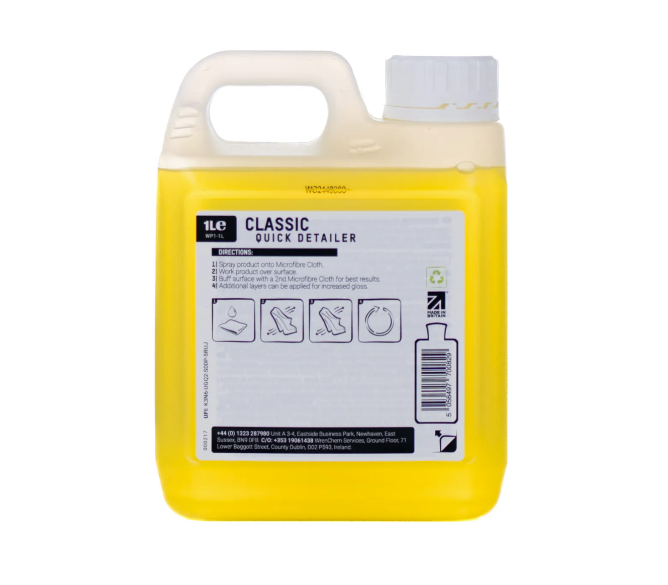 ValetPRO Classic Quick Detailer se stane vaším ideálním pomocníkem pro snadnou údržbu laku vašeho vozidla. Stačí pár střiků a pečlivě vyvinutá receptura zvýší lesk povrchu, dodá mu ochrannou hladkost, odpuzuje prach a snadno odstraní šmouhy, otisky prstů i skvrny od vody. Je navíc plně kompatibilní s vosky i keramickými povlaky, takže vašemu vozu poskytne péči, jakou si zaslouží. Pro ještě výraznější lesk stačí aplikovat více vrstev. Udělejte si s tímto detailerem příjemný zážitek při údržbě vašeho vozu.