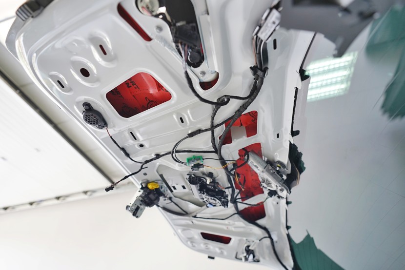 A konečně poslední vrstvu tvoří flexibilní pěna s tvarovou pamětí Comfortmat Soft Wave, kterou aplikujeme na plastovou výplň dveří. Materiál o tloušťce 15 mm zamezí skřípání plastů a dalším zvukům, které mohou způsobit kabely a další komponenty umístěné na pátých dveřích.