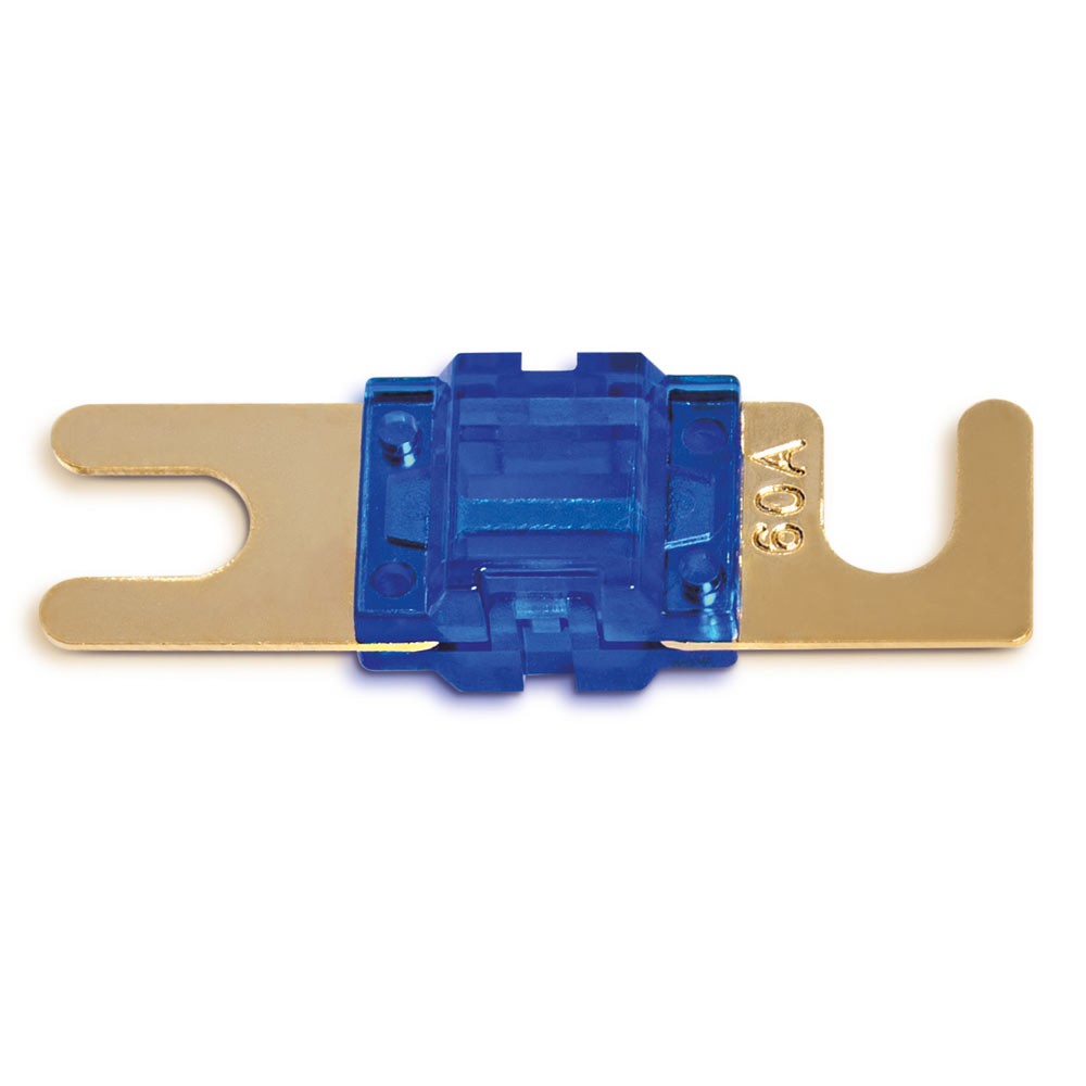Pojistka Mini-ANL, pozlacená. Hodnota pojistky 60 A. Rozměry (d x š x v) 42 x 12 x 8,5 mm. Cena za 1 kus.