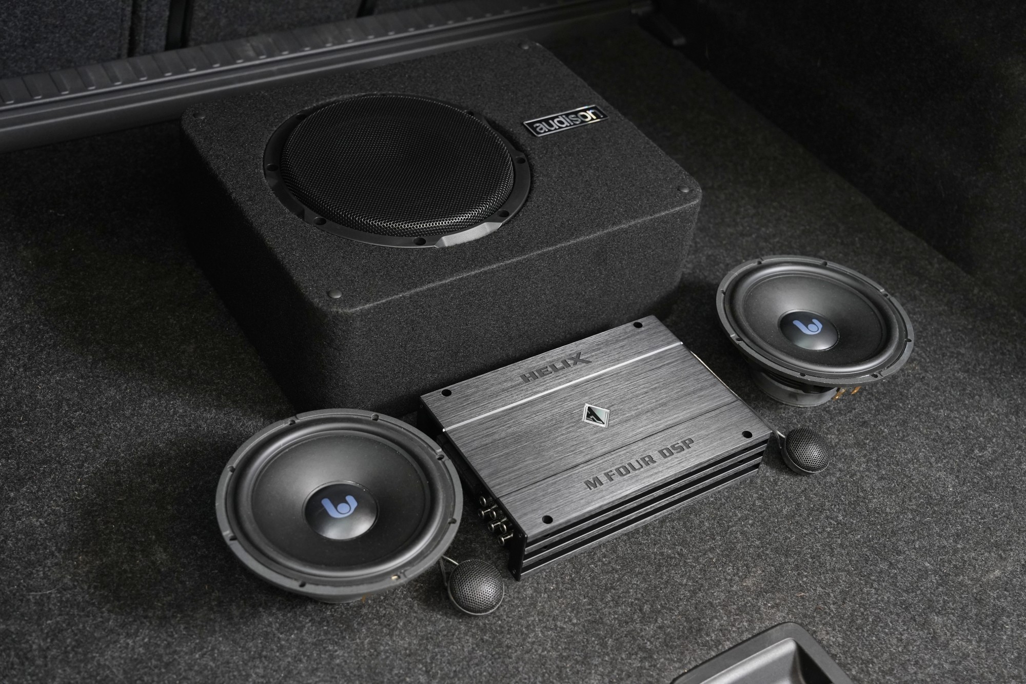 Pro instalaci do Škoda Enyaq jsme vybrali komponenty střední třídy italsko-německé spolupráce - konkrétně komponentní reproduktorový systém Quartorigo, kompaktní aktivní subwoofer Audison a zesilovač s integrovaným DSP procesorem Helix.