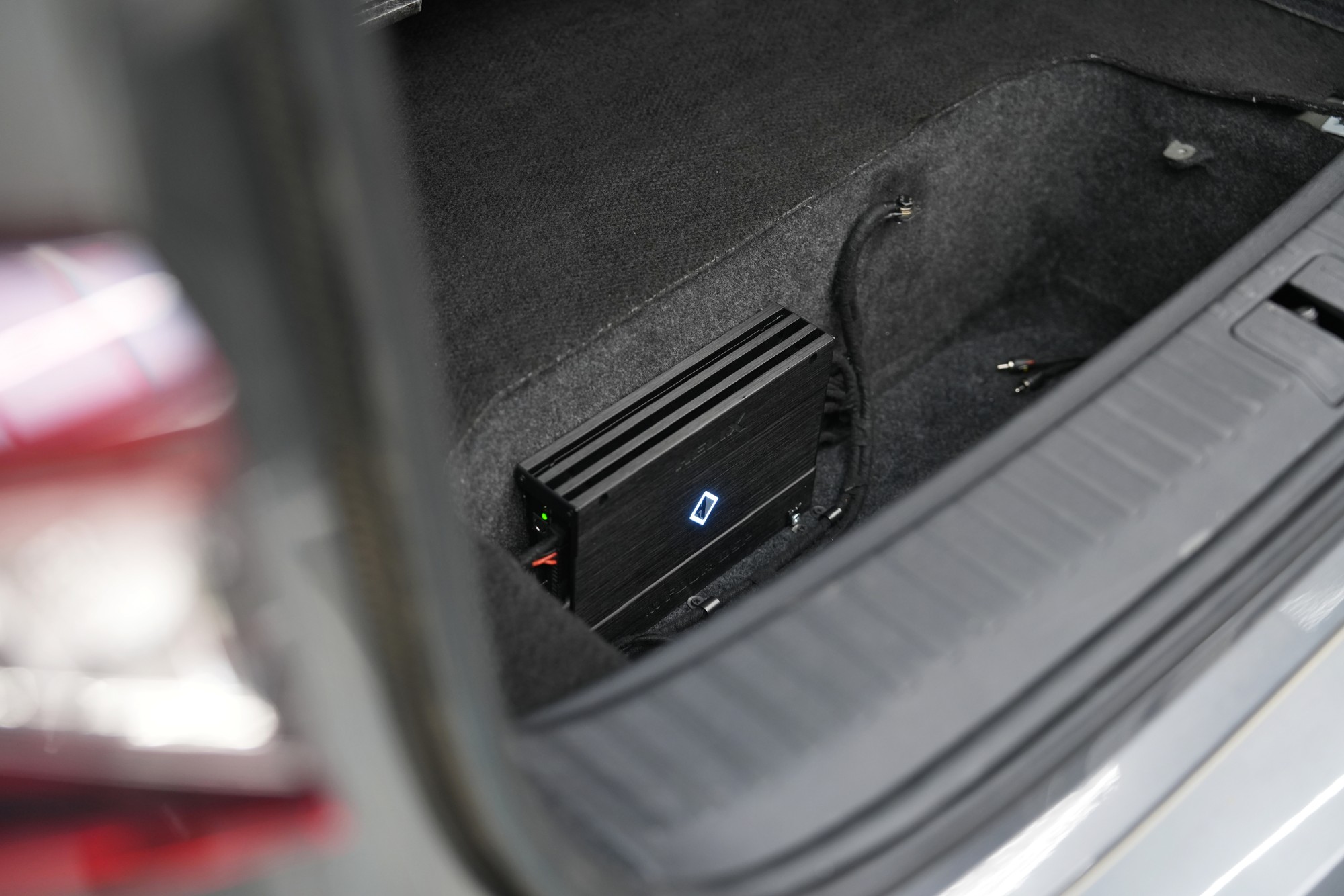 U elektromobilů je vždy nutné dbát na co nejefektivnější zesilovač, proto jsme zvolili model Helix M Four DSP třídy D s vysokou účinností. Díky jeho kompaktním rozměrům se nám podařilo zesilovač umístit do dvojité podlahy kufru, společně s aktivním subwooferem Audison. Splnili jsme tak přání zákazníka – dodat systému výkon a dynamiku, aniž bychom ubrali jediný litr z prostoru zavazadlového prostoru. Jako hlavní reproduktory jsme vybrali Italské Quartorigo Overture, které ve spojení s daným zesilovačem předvádějí všechny své kvality – čistý a detailní projev, přirozené středy a energické basy. Reproduktory zůstaly na továrních pozicích, takže jejich instalace je zcela nenápadná a nezasahuje do designu interiéru.