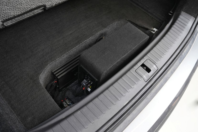 Na stejné místo se nám povedlo s trochou štěstí umístit i aktivní subwoofer Audison. Nenechte se však zmást kompaktními rozměry - tento pracant s měničem o průměru 8" dodá ozvučení potřebnou dynamiku a solidní porci basů.