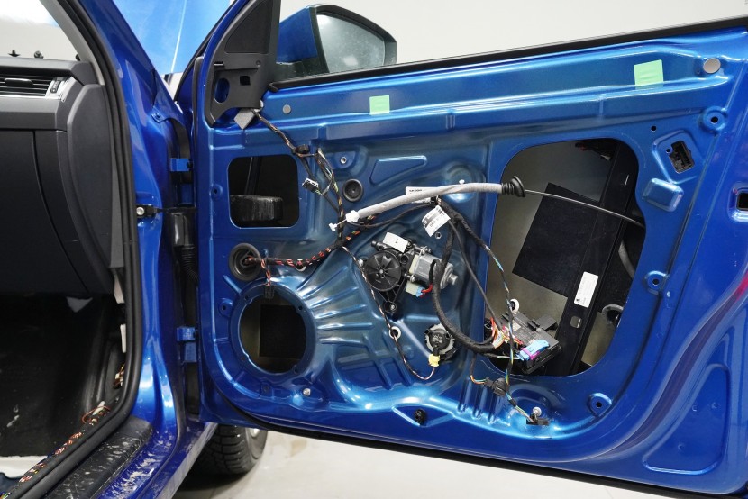 Poslední vrstvou je Comfortmat Softwave o tloušťce 15. Tato flexibilní pěna s tvarovou pamětí se lepí na plastové čalounění dveří z důvodu zamezení skřípání a vrzání nejen plastů, ale i drátů a dalších komponent uvnitř dveří a dodatečně i sníží hluk této oblasti. Stejný postup volíme i u zadních dveří.