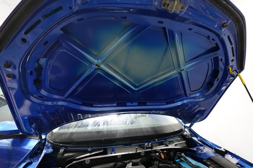 Nezapomínáme ani na kapotu, na kterou v první vrstvě aplikujeme opět lehký antivibrační materiál Comfortmat D2. Tím kapotu zpevníme, zamezíme vibracím, které se přenáší do dalších částí vozu a zmizí i typický plechový zvuk při zavření kapoty. Na originální kryt kapoty následně aplikujeme zvukově i tepelně izolační materiál Comfortmat Vision, který sníží hluk motoru a to při zachování původního vzhledu motorového prostoru.