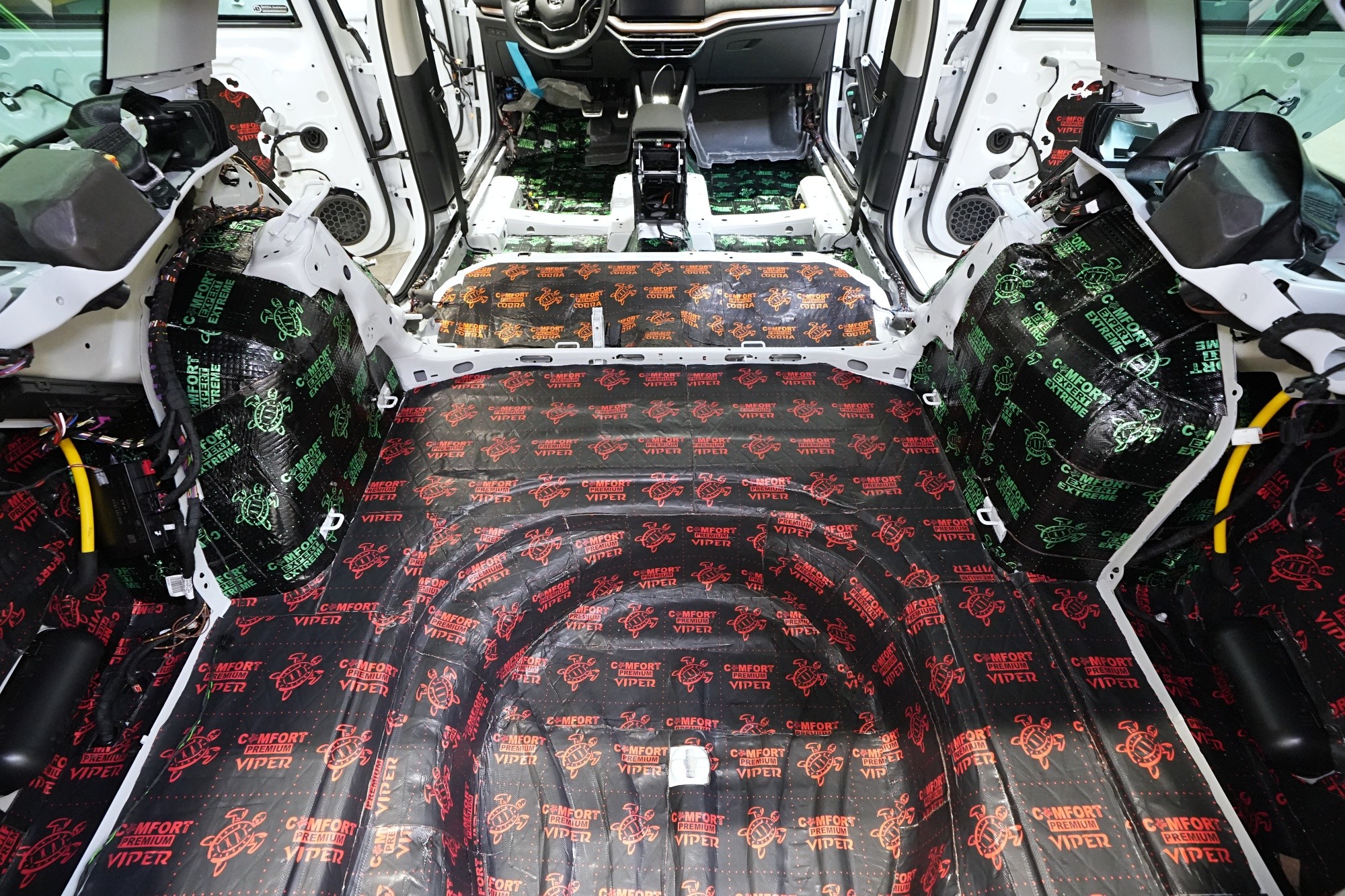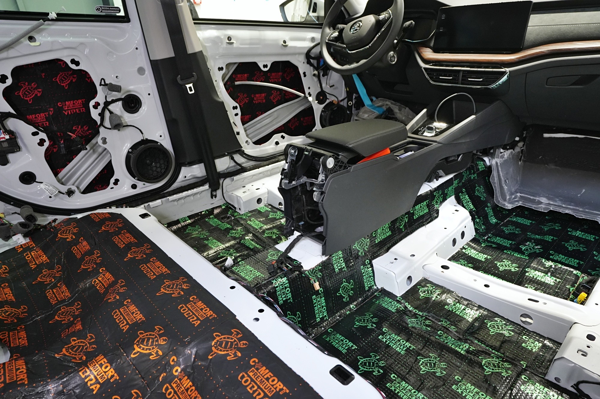 Pracujeme výhradně s nejmoderními materiály ruské společnosti Comfortmat, která představuje současnou světovou špičku v odhlučnění vozidel. S našimi materiály garantujeme nejúčinnější odhlučnění na dnešním trhu.