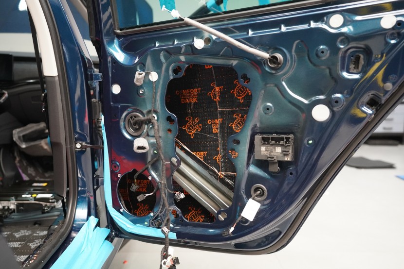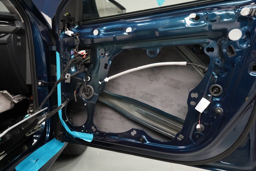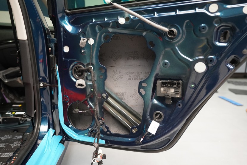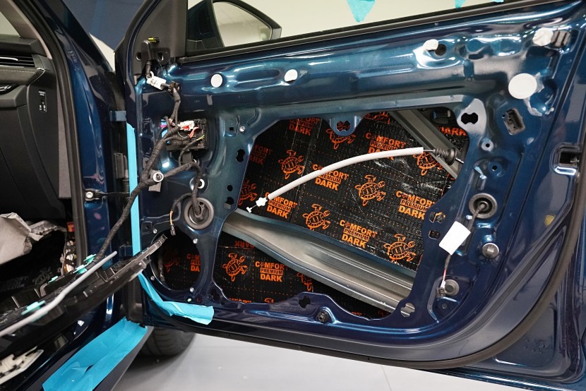 Poslední vrstvou je Comfortmat Softwave o tloušťce 15. Tato flexibilní pěna s tvarovou pamětí se lepí na plastové čalounění dveří z důvodu zamezení skřípání a vrzání nejen plastů, ale i drátů a dalších komponent uvnitř dveří a dodatečně i sníží hluk této oblasti.