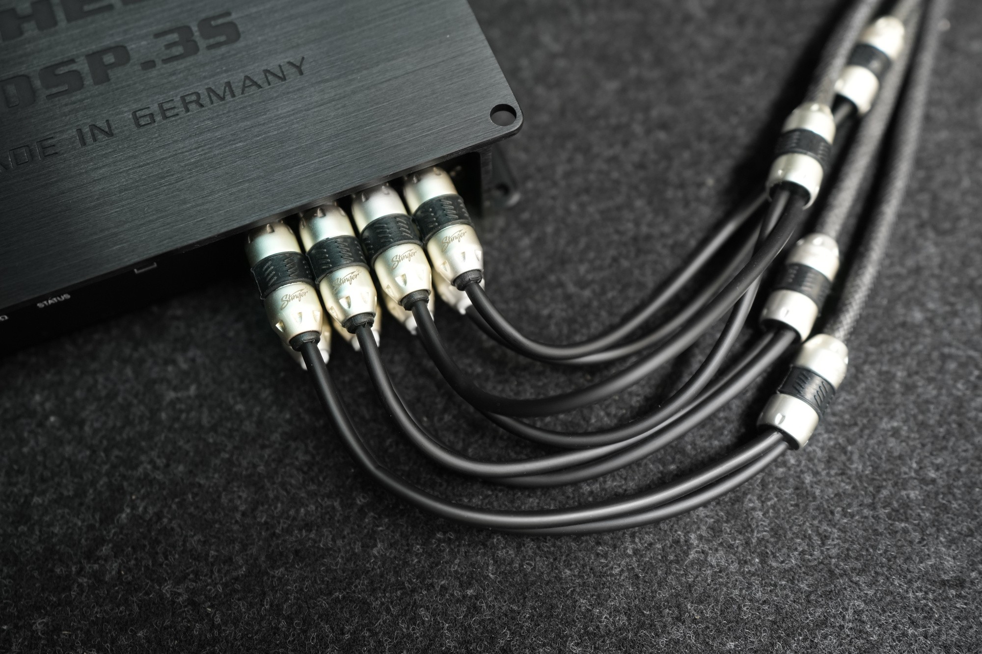 DSP procesor. Zařízení, bez kterého se žádný kvalitní audio systém v dnešní době neobejde. Díky němu budeme schopni zvuk v tomto automobilu detailně naladit, aby poskytoval majiteli vozu požadovaný výsledek. Pro účely této instalace jsme zvolili DSP procesor Helix od německých mistrů z Audiotec-Fischer. Kvalitní komponenty si žádají také kvalitní signálové kabely. V tomto případě padla volba na druhou nejvyšší řadu 8000 amerického výrobce Stinger, které zajistí ničím nerušený přenos zvuku.