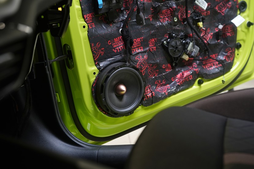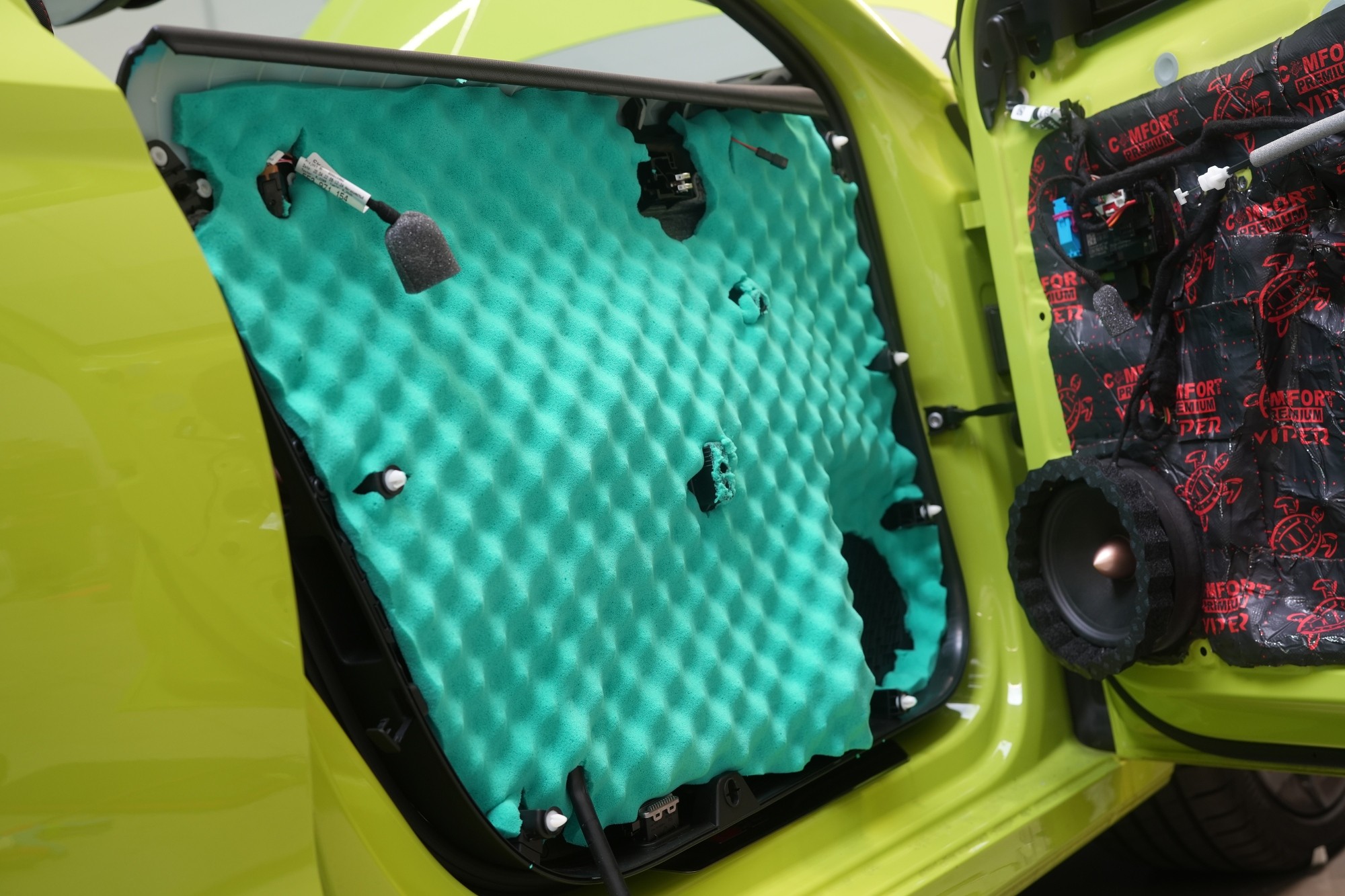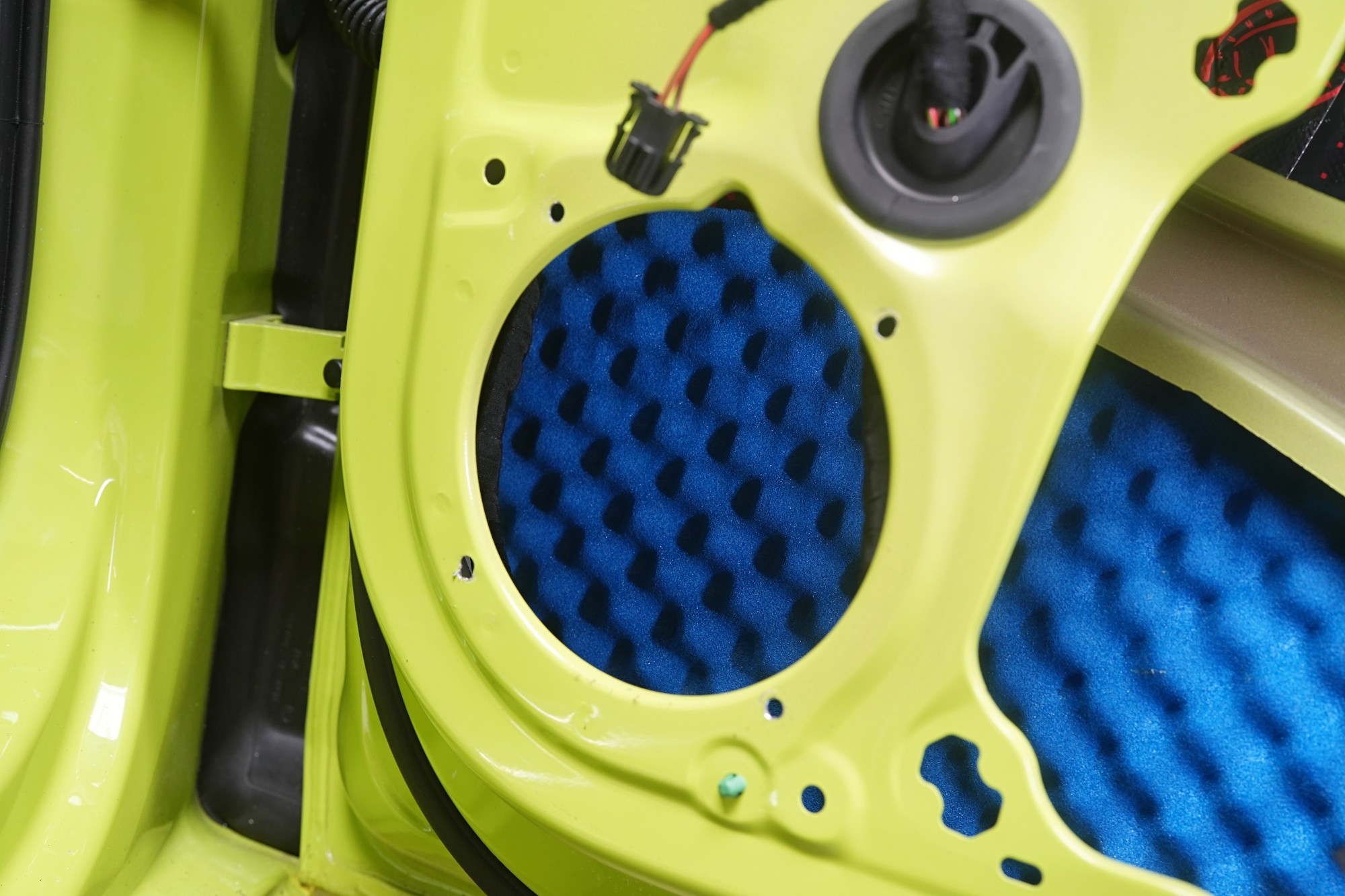 Novinkou u všech našich instalací je aplikace pěnového proužku okolo středobasového reproduktoru. Díky tomu dojde k utěsnění mezi dveřní výplní a reproduktorem, díky čemuž se veškerá zvuková energie soustředí do interiéru vozidla, místo aby se odrážela uvnitř dveří. Tato vychytávka zvýší účinnost a čistotu zvukového systému.