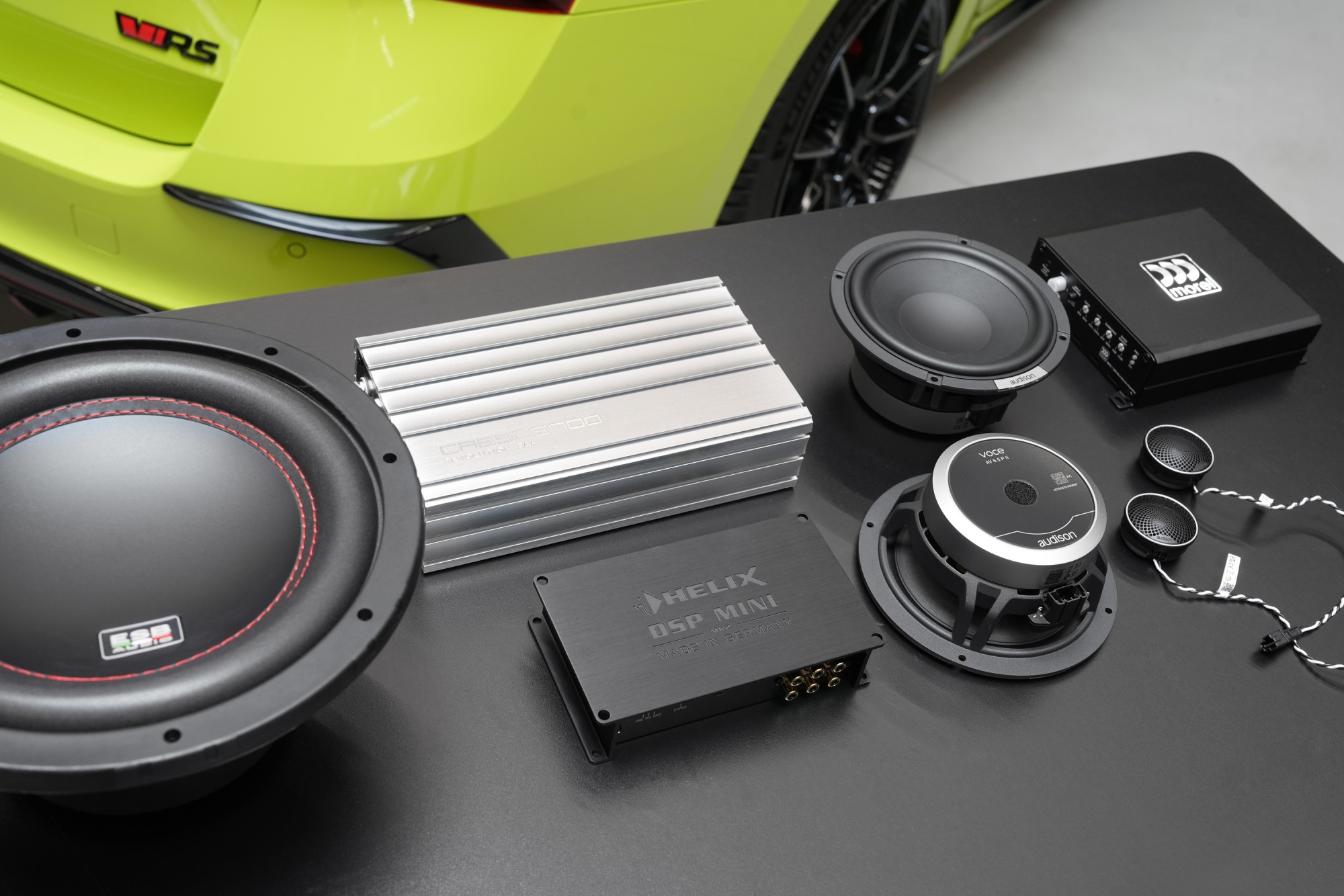 Na úvodní fotografii vidíte všechny klíčové komponenty této instalace. Spojení reproduktorů Audison Voce II, zesilovačů Crescendo a Morel, subwooferu ESB a externího DSP procesoru tvoří základ ozvučení, které se svou kvalitou posouvá Octavii RS na úroveň skutečně náročného poslechu.