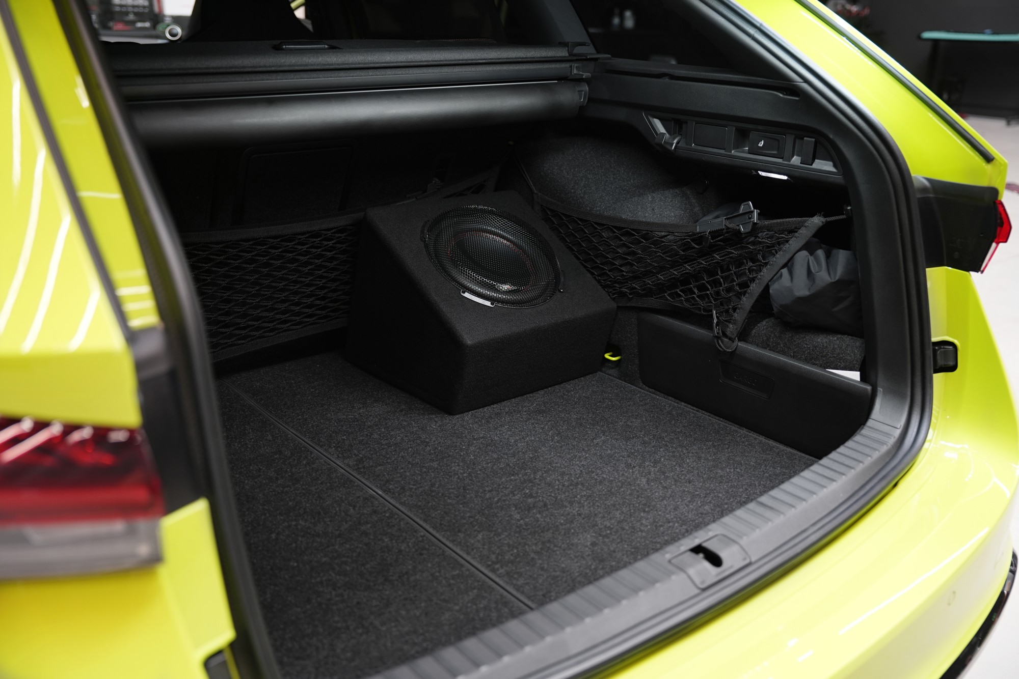 Kvalitní prezentace nízkých frekvencí znamená i nezbytnost kvalitního subwooferu a odpovídajícího objemu. Zvolená 20litrová uzavřená ozvučnice však zabere minimum prostoru v kufru, odměnou však je zvuk, který je neporovnatelný s kompromisními řešeními jako jsou skryté subwoofery v rezervě a další aktivní subwoofery. V případě potřeby lze subwoofer kdykoliv jednoduše odebrat díky specifickému konektoru. Nemusíte se ani bát poškození, pevná ocelová mřížka subwoofer bezpečně chrání.