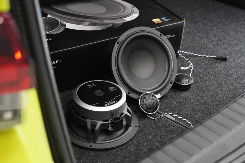 Základem této instalace jsou reproduktory Audison Voce II, nejnovější generace jedné z nejoblíbenějších řad italského výrobce. Inovovaná konstrukce si rychle získala respekt odborné veřejnosti i audiofilů a právem patří k tomu nejlepšímu, co lze v dané třídě zvolit. Dvoupásmový systém kombinuje 165 mm středobas s papírovou membránou, která je vyhlášená svou přirozeností a muzikálností, s výškovým reproduktorem o průměru 28 mm. Ten využívá hedvábnou kalotu a výkonný neodymový magnet, což zajišťuje jemné, detailní a neunavující výšky i při dlouhém poslechu.