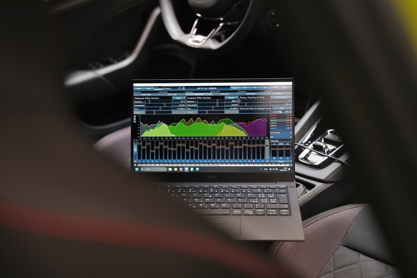 Na závěr instalace tradiční měření frekvenční odezvy jednotlivých reproduktorů a následné detailní nastavení zvuku pomocí DSP procesoru. Akustika interiéru automobilu je velmi specifická a z hlediska zvuku poměrně problematická. Je proto nutné korigovat nejen nevhodné umístění reproduktorů, ale také pozici posluchače a všechny překážky, které mohou ovlivnit cestu zvuku – například sedačky, středový tunel, volant nebo palubní desku.Na výslednou ekvalizační křivku každého reproduktoru má vliv celá řada faktorů – prostor za reproduktorem, materiál membrány a koše, ale i zmíněné překážky v interiéru. Proto je nezbytné přesně změřit frekvenční odezvu každého reproduktoru zvlášť a naměřená data následně zadat do DSP procesoru.Pro měření používáme kvalitní kalibrované mikrofony a profesionální software REW. Cílem tohoto postupu je dosažení co nejlineárnější frekvenční odezvy, což i v akusticky složitém prostředí automobilu umožní dosáhnout maximálně věrného a kvalitního zvuku.
