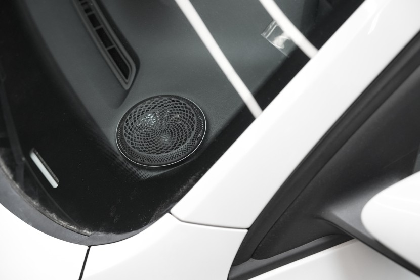 Umístění středového reproduktoru do palubní desky představuje z akustického hlediska jednu z nejlepších možných pozic. Reproduktor se nachází blízko výškového pásma, což umožňuje perfektní návaznost jednotlivých frekvencí a vytvoření stabilní, přesně lokalizované zvukové scény přímo před posluchačem. Oproti instalaci do dveří zde dochází k výraznému zlepšení čitelnosti hlasů i nástrojů a celkově přirozenějšímu projevu. Zvolený průměr 100 mm přináší oproti menším středovým měničům vyšší dynamiku, plnější podání nižších středních frekvencí a lepší kontrolu nad přechodem na basové pásmo. Díky tomu může systém fungovat uvolněněji a s menším zkreslením i při vyšších hlasitostech. Celkový dojem podtrhuje elegantní design ochranné mřížky, který nenarušuje interiér a naopak mu dodává prémiový vzhled.