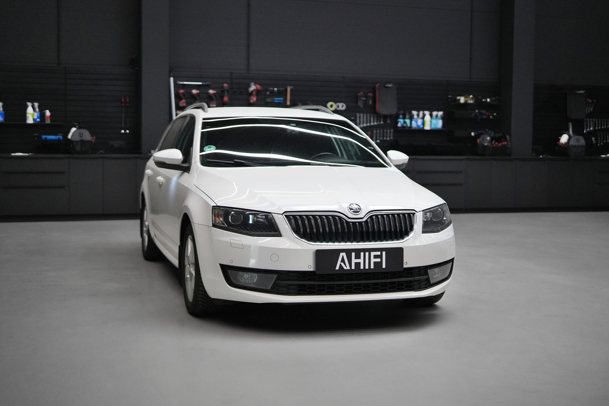 Škoda Octavia, která u nás v minulosti již prošla kompletním ozvučením, se tentokrát vrátila na další výrazný upgrade. Cílem bylo posunout celý systém ještě blíže k referenčnímu SQ projevu, a proto jsme v rámci této etapy realizovali zakázkovou výrobu A-sloupků pro výškové reproduktory ESB nejvyšší řady 9000 (Novemila), instalaci středových reproduktorů stejné řady do palubní desky a zároveň odhlučnění samotné palubní desky.