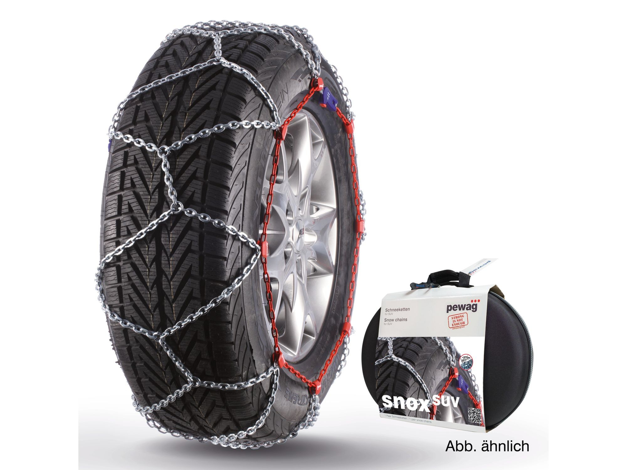 Sada značkových sněhových řetězů obsahuje 2 kusy velmi kvalitních sněhových řetězů Pewag Snox SUV. Čtyřhranné řetězové články přesně zapadají do sebe a tím zamezují překroucení řetězu při zátěži a zároveň zajišťují optimální přenos záběrových a brzdných sil. Speciální vlnitý profil pak zvyšuje záběr a prodlužuje životnost. Díky šikmé stopě středové příčky sněhových řetězů Pewag dochází v tomto místě kromě přenosu bočního vedení i k přenosu trakce brzdných a rozjezdových sil, která je u řetězů s rovným vedením minimální. Sněhové řetězy Snox SUV neobsahují žádné spojovací prvky - celý řetěz je v celku. Instalace je tedy maximálně jednoduchá. Řetězy se pouze navléknou na kolo a během jízdy se automaticky napnou. Sněhové řetězy jsou balené v praktickém plastovém pouzdře. Pro pohodlnější výběr sněhových řetězů Pewag můžete využít jejich originální konfigurátor Pewag. Určeno pro osobní vozy, crossovery a menší i větší SUV.
