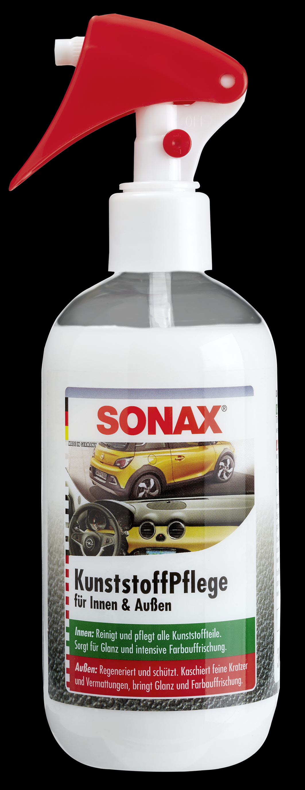 Vysoce účinný přípravek pro péči o plasty celého vozu. V interiéru čistí a ošetřuje všechny plastové části (přístrojová deska, dveřní výplně, plastové obložení sedadel atd.) Osvěžuje barvy a zaručuje intenzivní lesk. V exteriéru čistí, udržuje a konzervuje všechny nelakované vnější plastové díly. Povrch získá hluboký lesk a barvy jsou intenzivně oživeny. Odstraňuje i matné skvrny a povrchové škrábance. Lze použít i jako konzervaci motoru – jednoduché použití přímo po umytí motoru. Neobsahuje rozpouštědla.